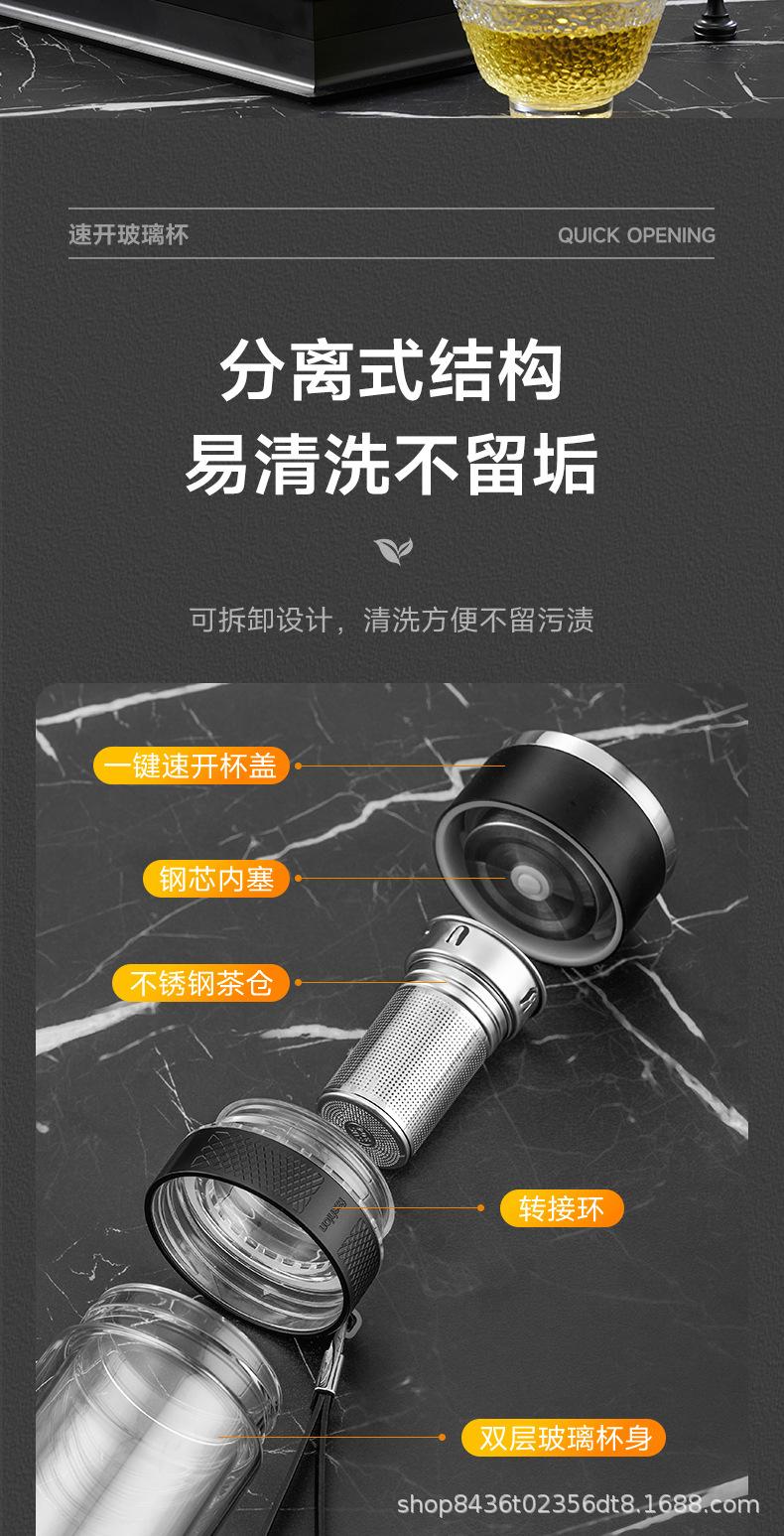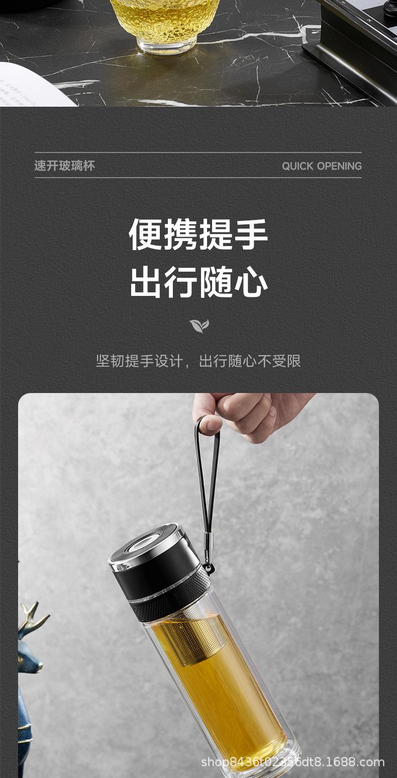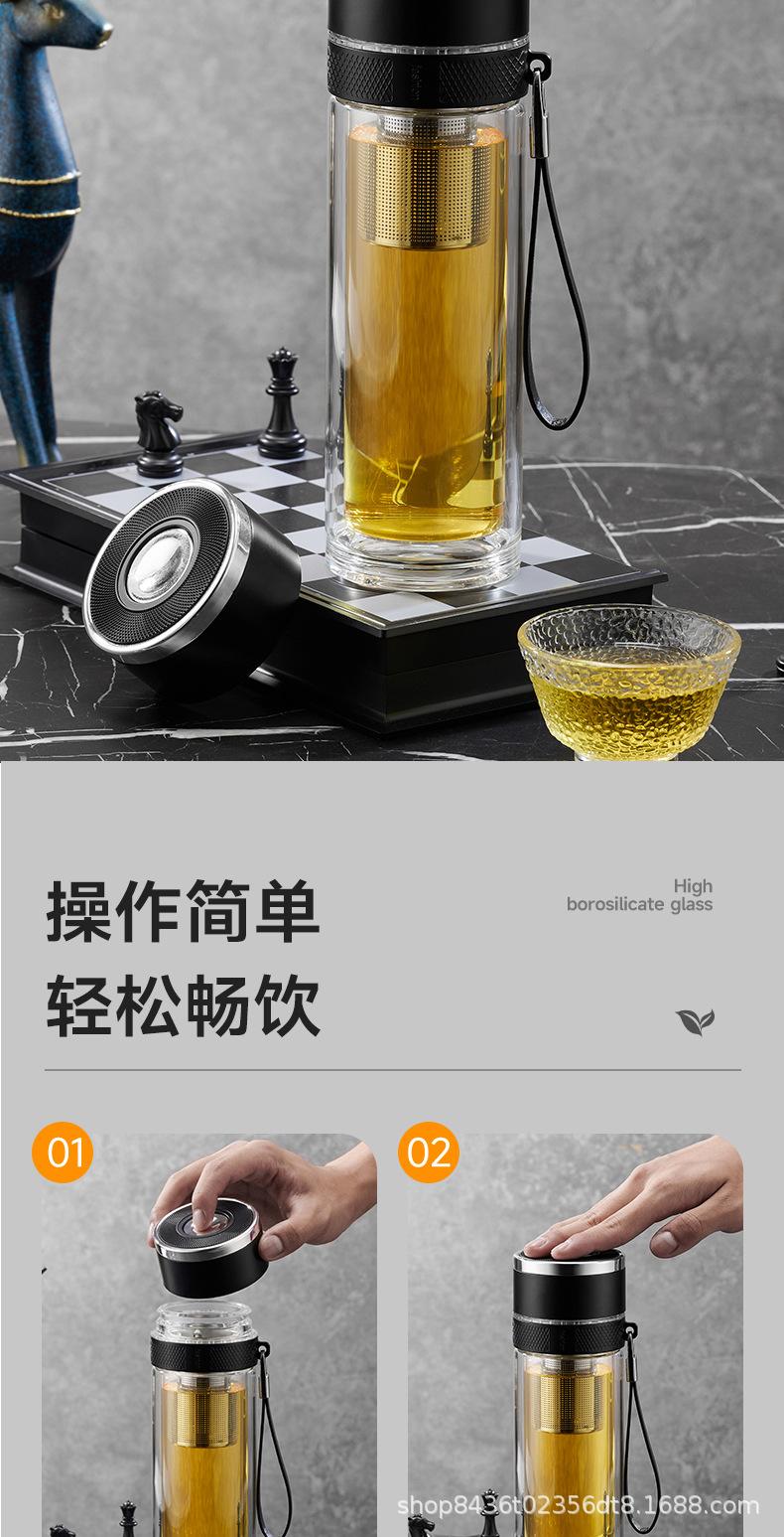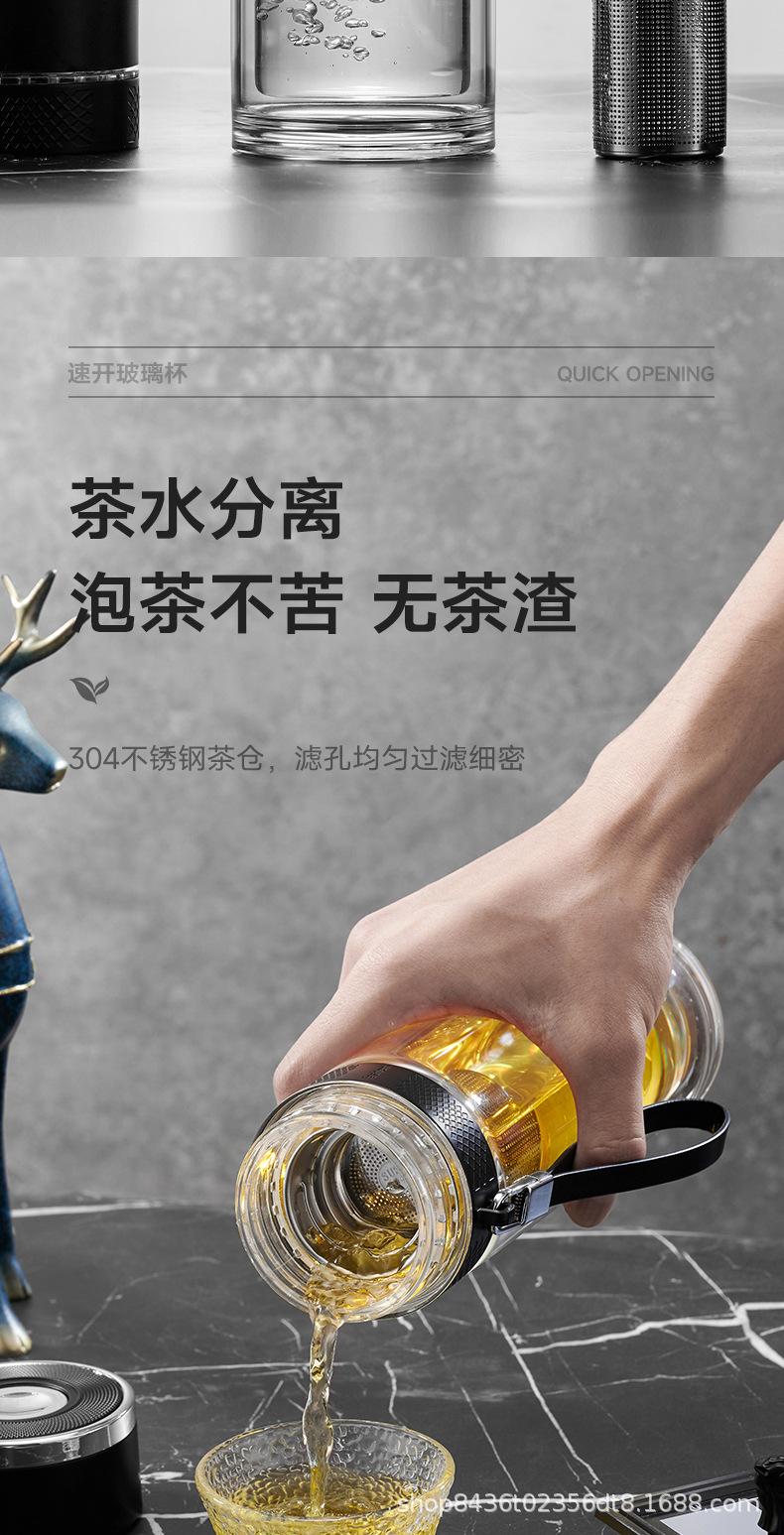 Taza de té de vidrio súper grande para hombre, nueva taza de té de alta gama con tapa abierta automática, separación de té, taza de agua portátil de doble capa