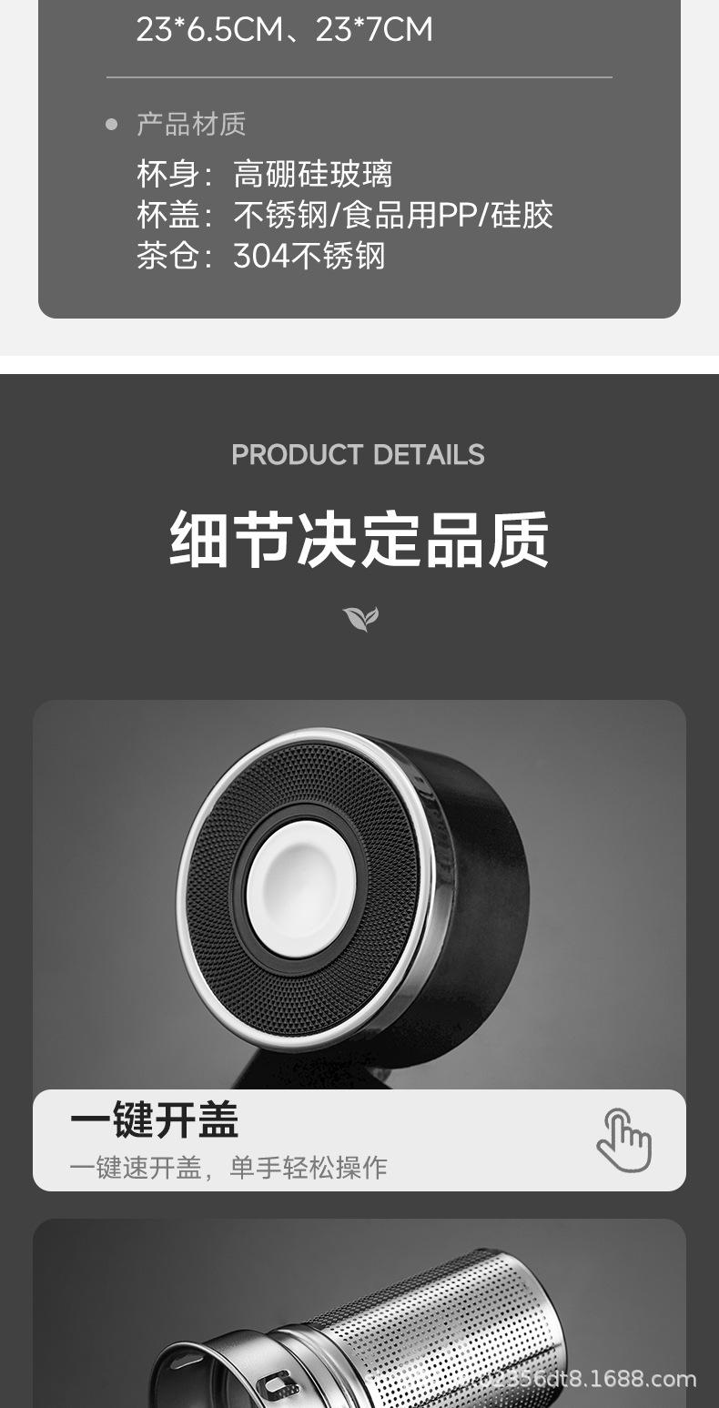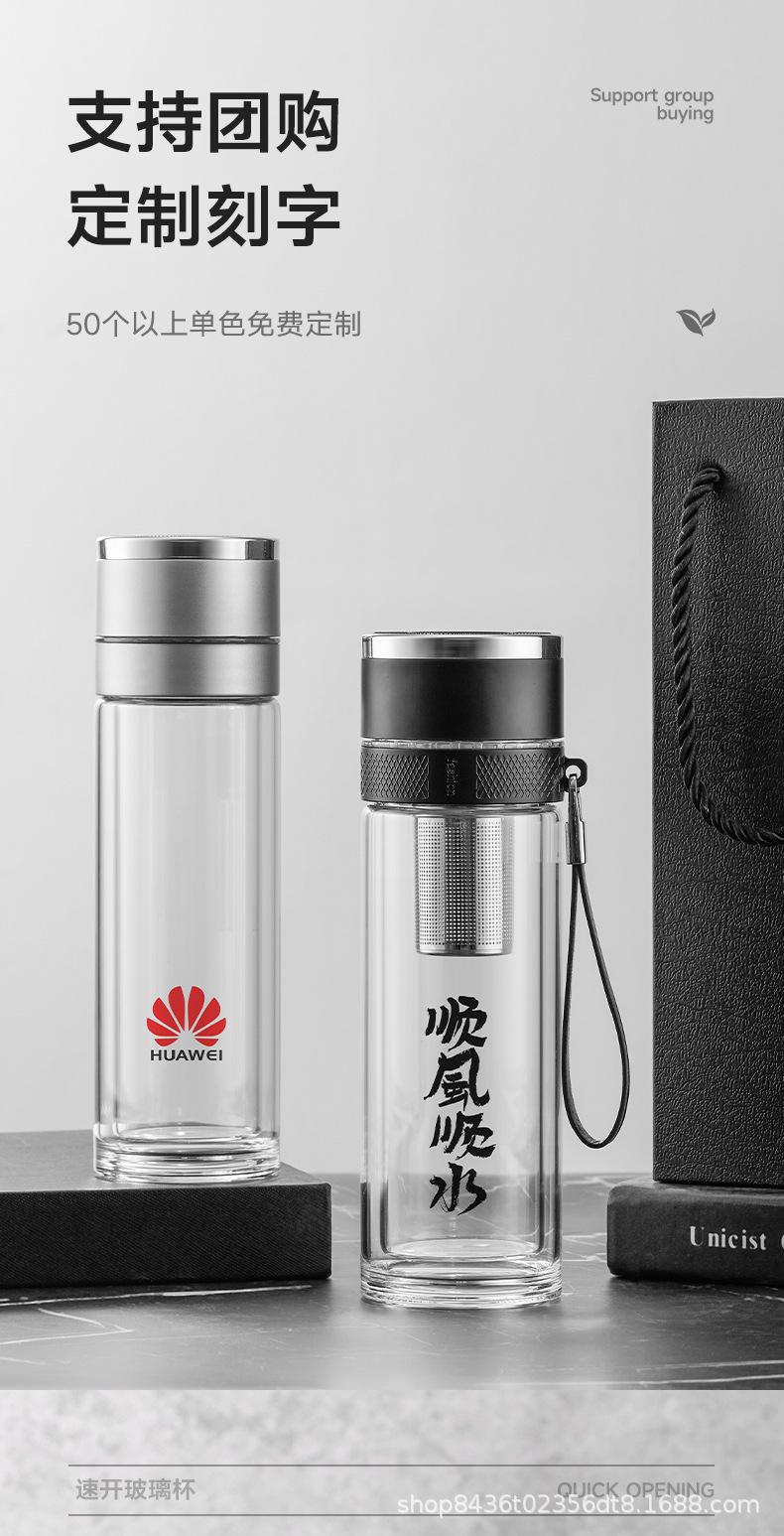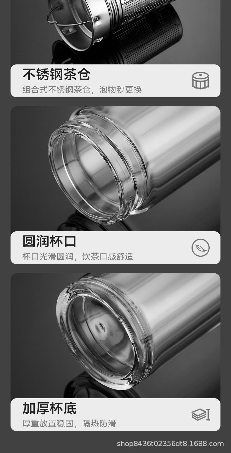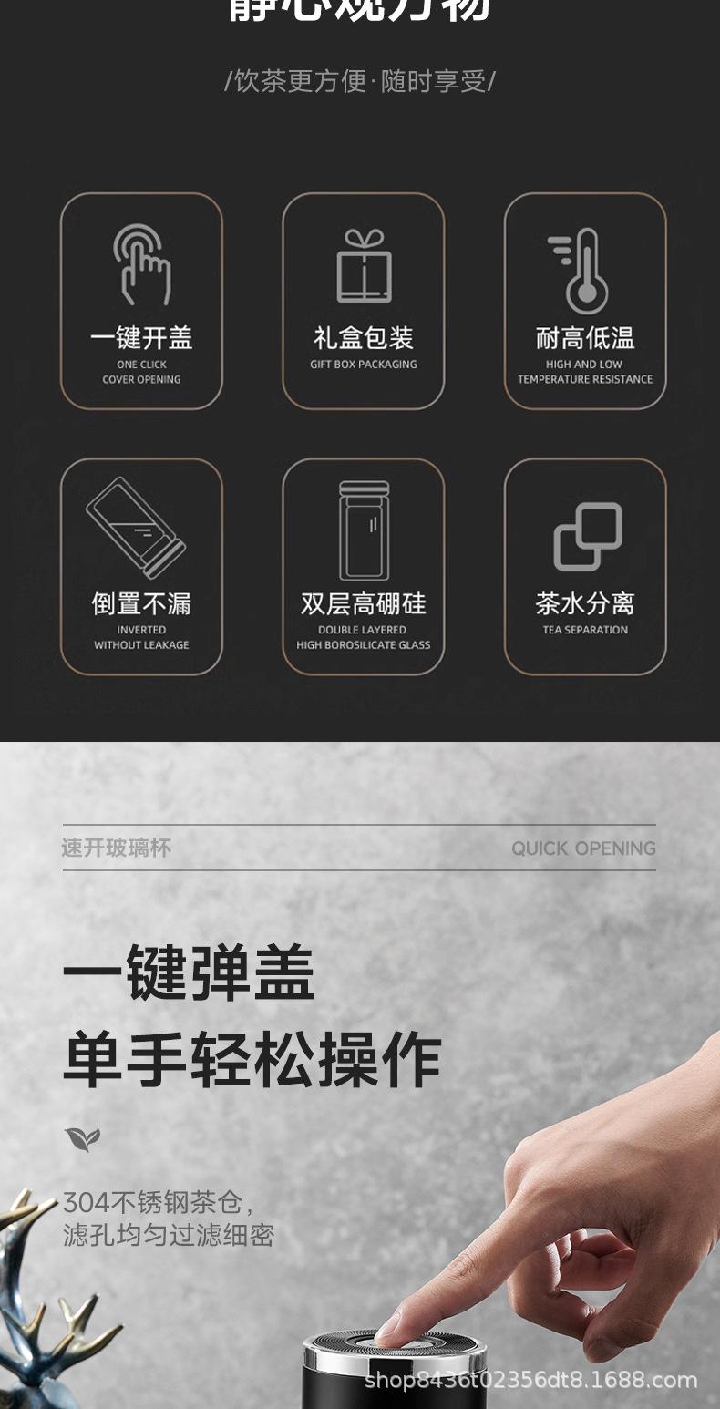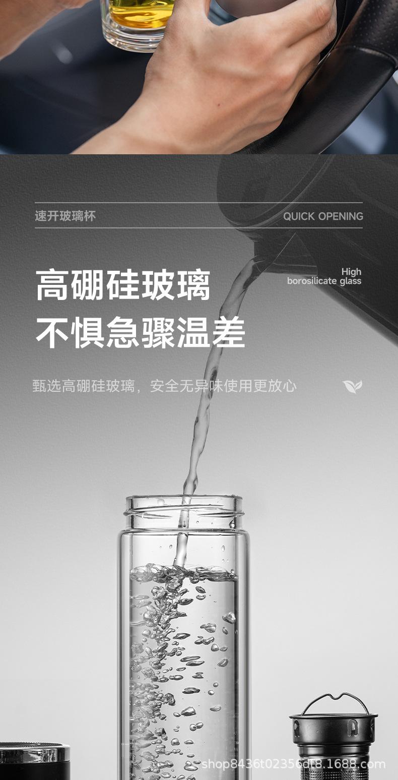 Taza de té de vidrio súper grande para hombre, nueva taza de té de alta gama con tapa abierta automática, separación de té, taza de agua portátil de doble capa