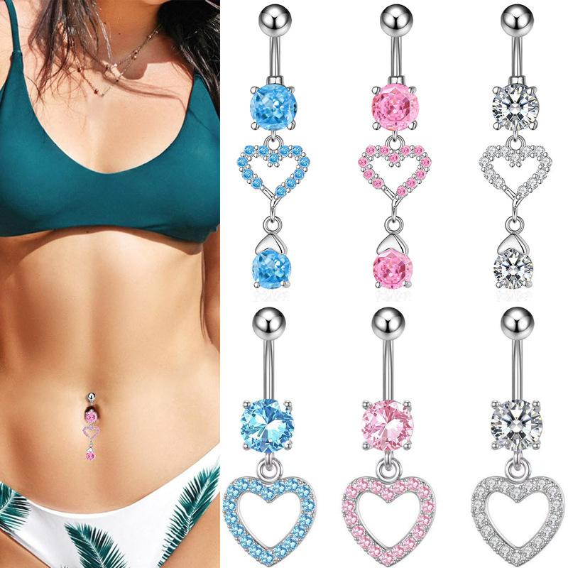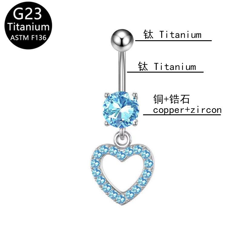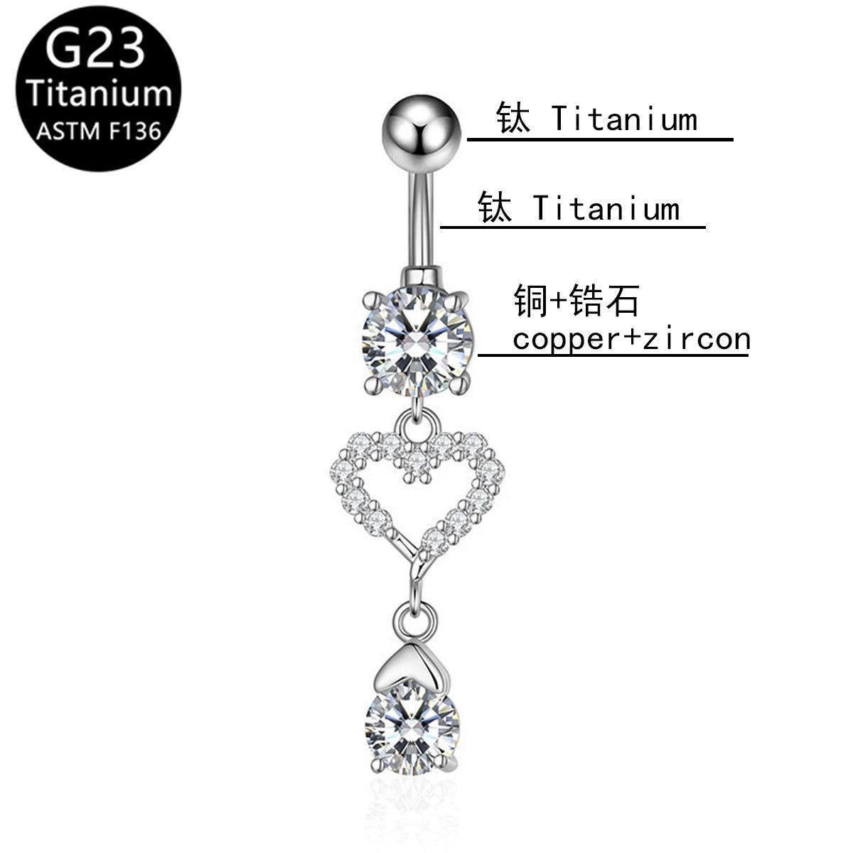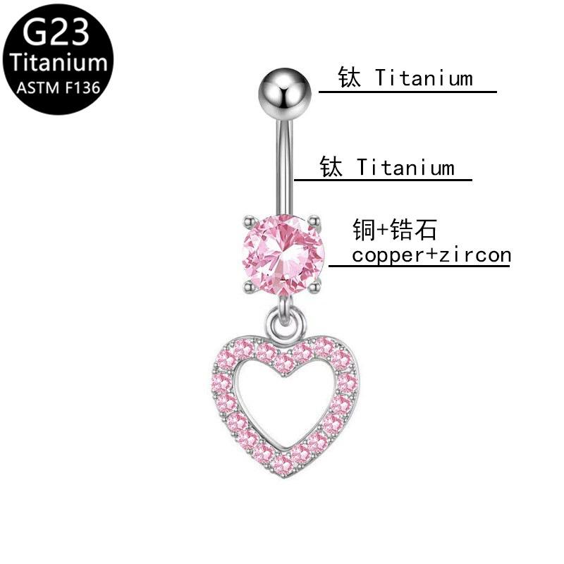 Moda Nueva Joyería Corazón de Durazno Micro-incrustado Anillo para el Ombligo Barra de Titanio G23 Venta Caliente Colgante de Zirconia Uña para el Ombligo Perforación Hebilla para el Ombligo