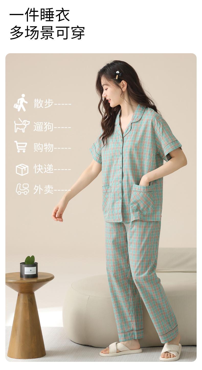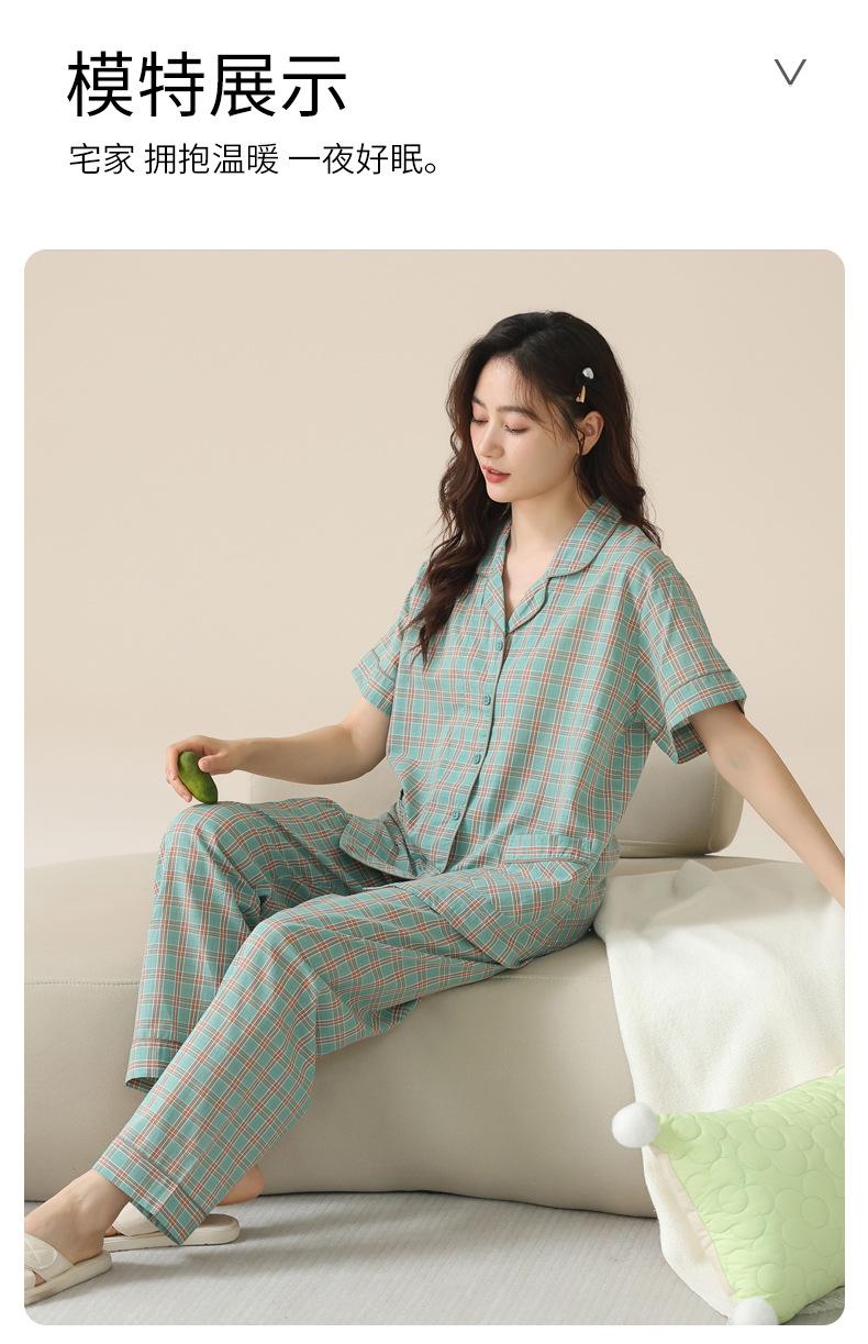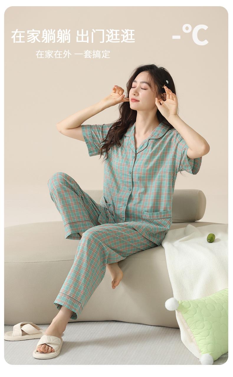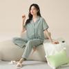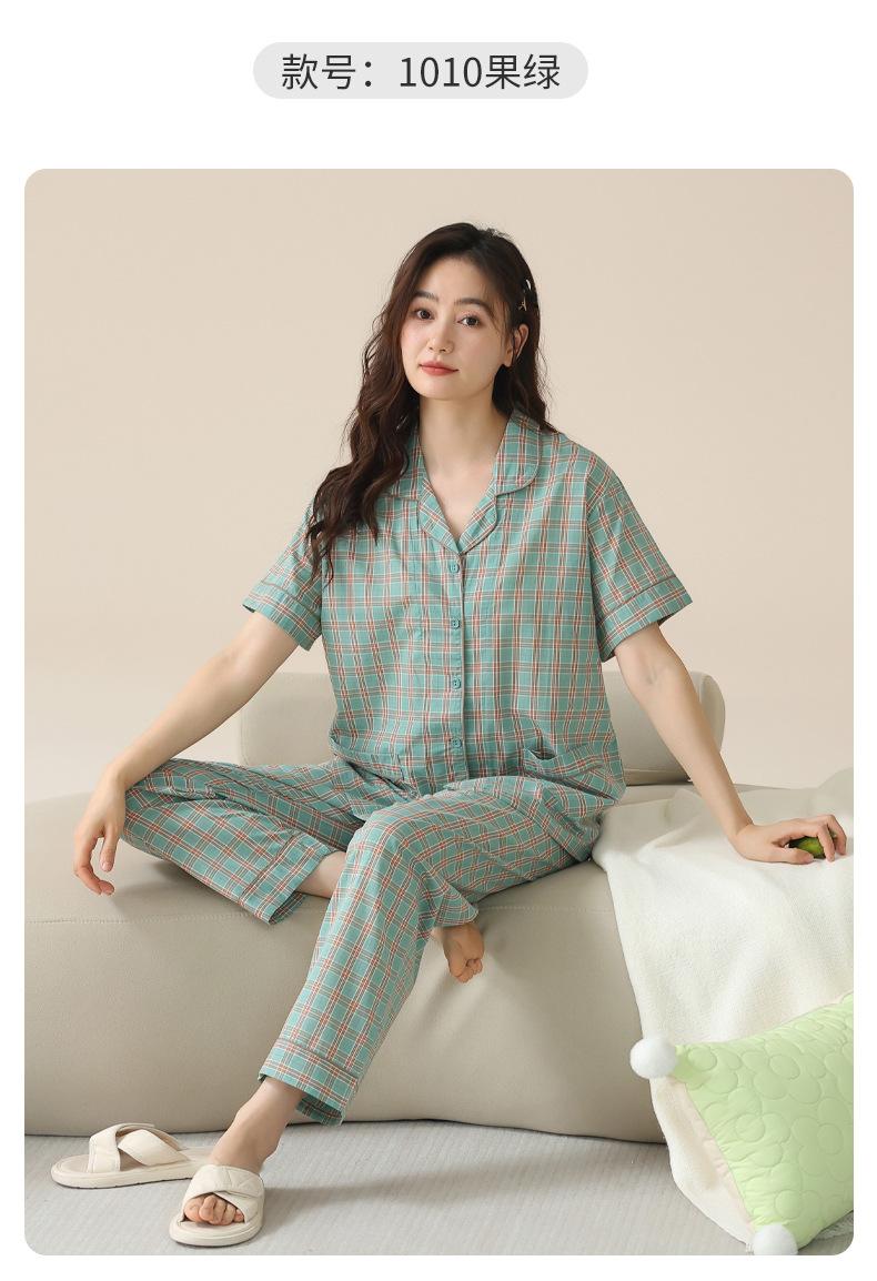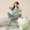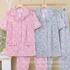 Pijama Nuevo para Madre de Mediana Edad y Anciana Verano Manga Corta Pantalones Cárdigan Conjunto de Dos Piezas Holgado Ropa de Casa para Mujer