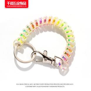 2.20¥2.20Venta directa de fábrica, llavero de cuerda de resorte antipérdida de plástico PU, llavero de cuerda de resorte de línea telefónica de color, cuerda de mano perdida |