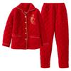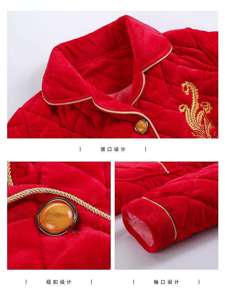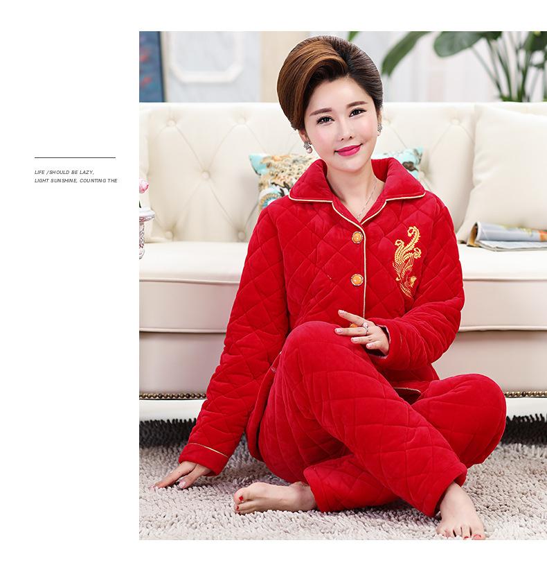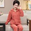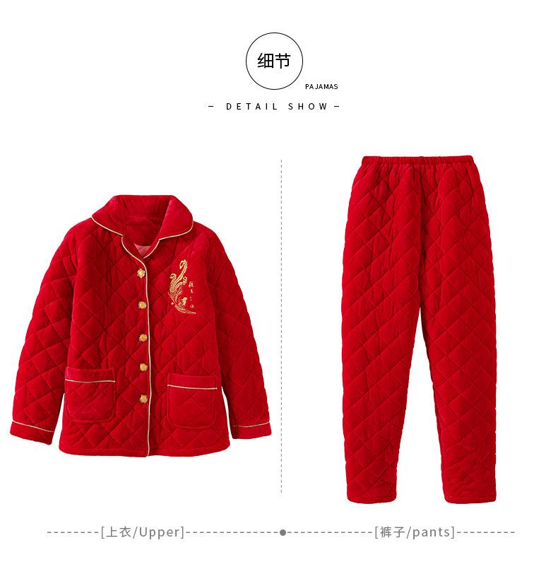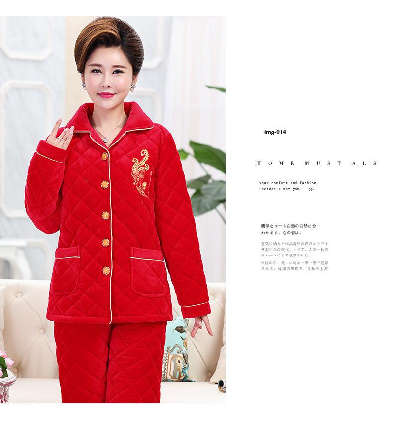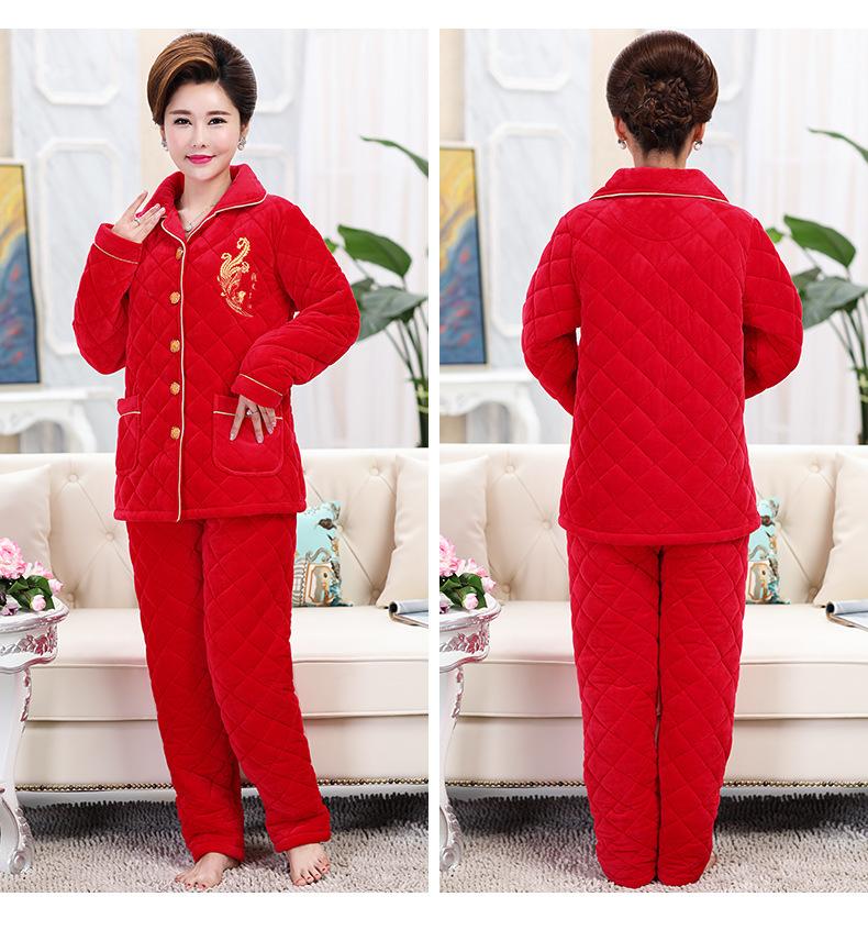 Pijamas para Mujeres de Mediana Edad y Mayores para el Año del Zodíaco, Chaqueta Acolchada de Vellón Coral Acolchada de Algodón, Conjunto Cálido de Invierno de Tres Capas para Madres, Ropa para el Hogar