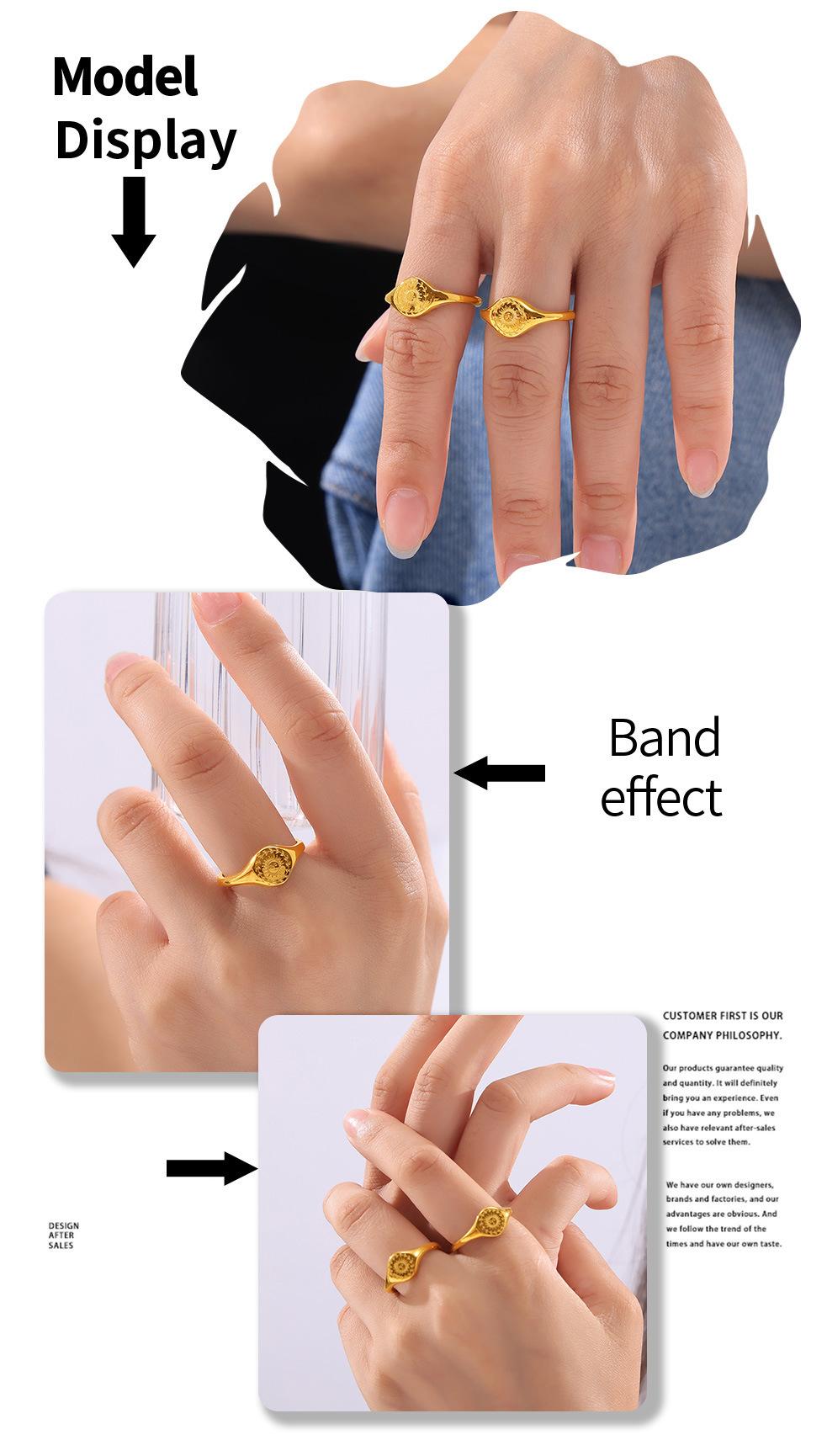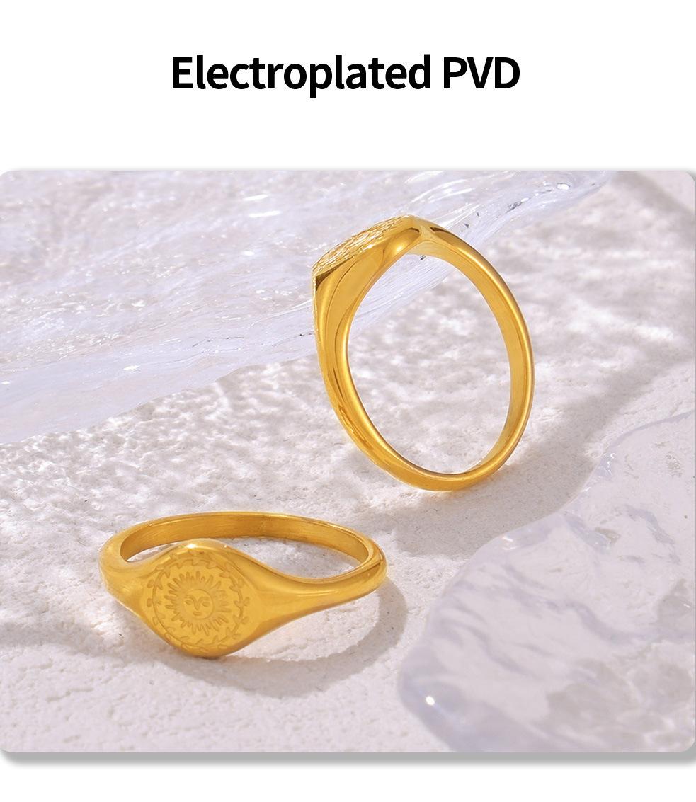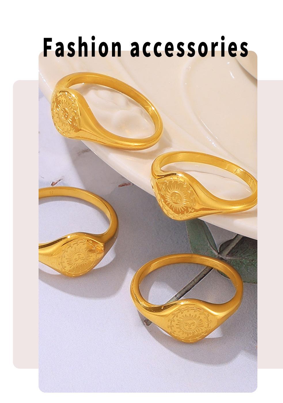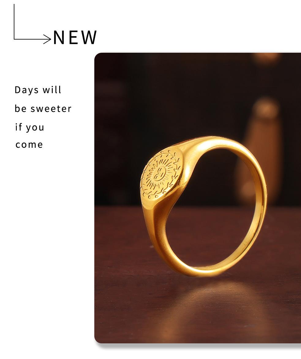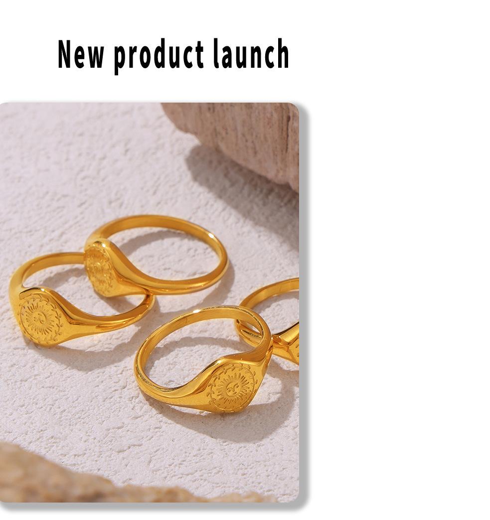 Anillo de acero de titanio con modelado de girasol transfronterizo de moda, personalidad chapado en oro K real de 18, anillo de temperamento simple, joyería al por mayor