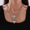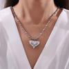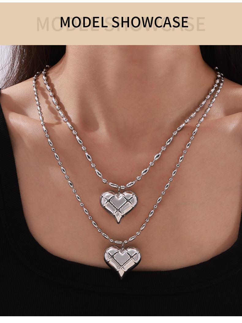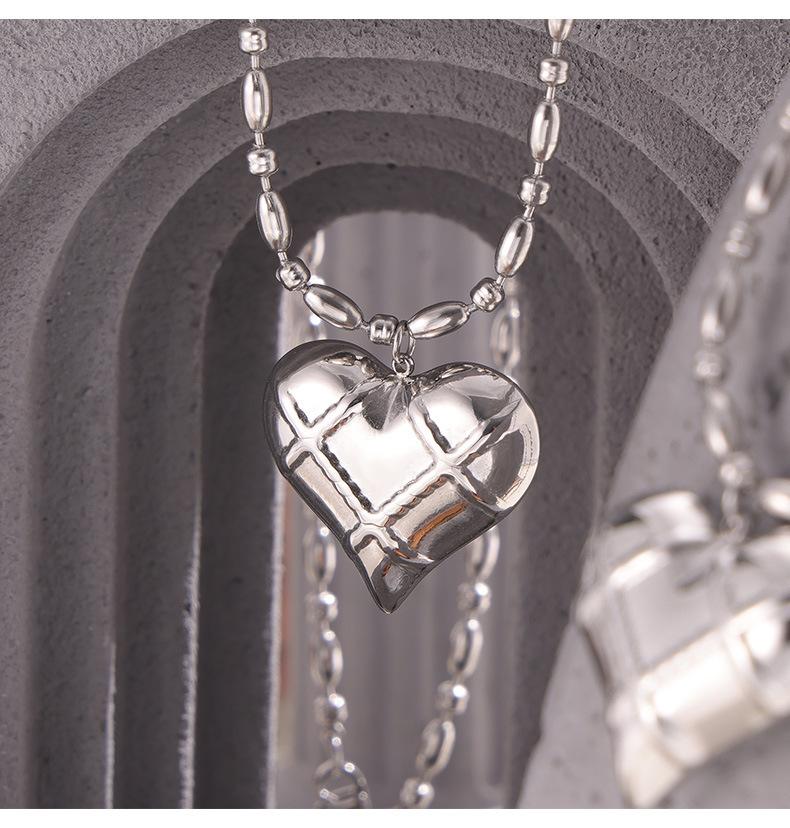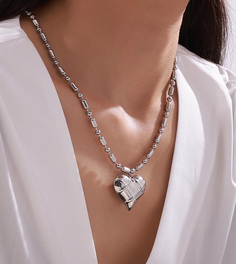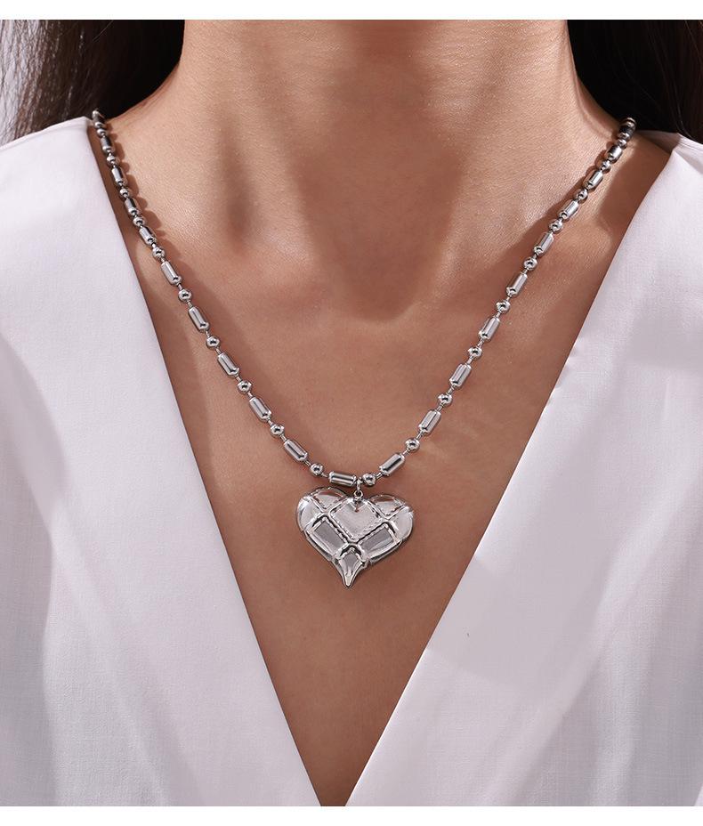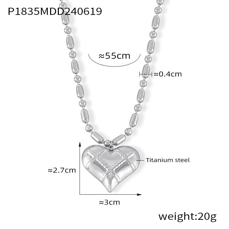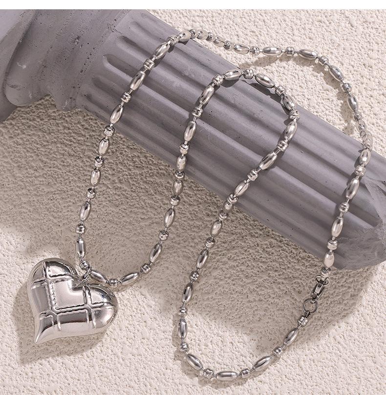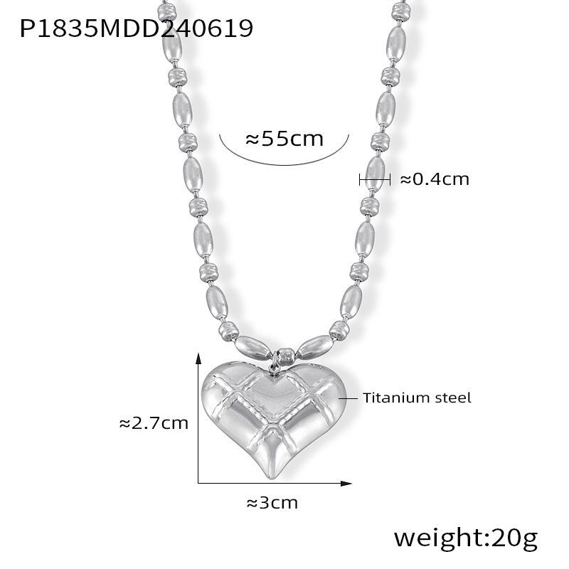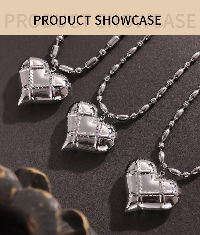 Colgante con textura de malla de amor hueca transfronteriza entre Europa y Estados Unidos, cadena de cuentas de arroz de acero de titanio versátil retro de moda, joyería elegante y eólica