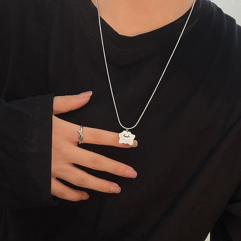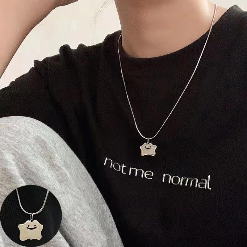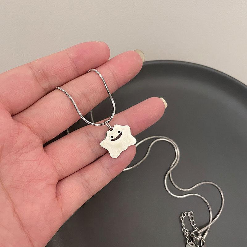 Collar con colgante de moda para hombre y mujer, diseño de nicho moderno, con cara sonriente de monstruo pequeño y divertido de dibujos animados, bonito y sencillo