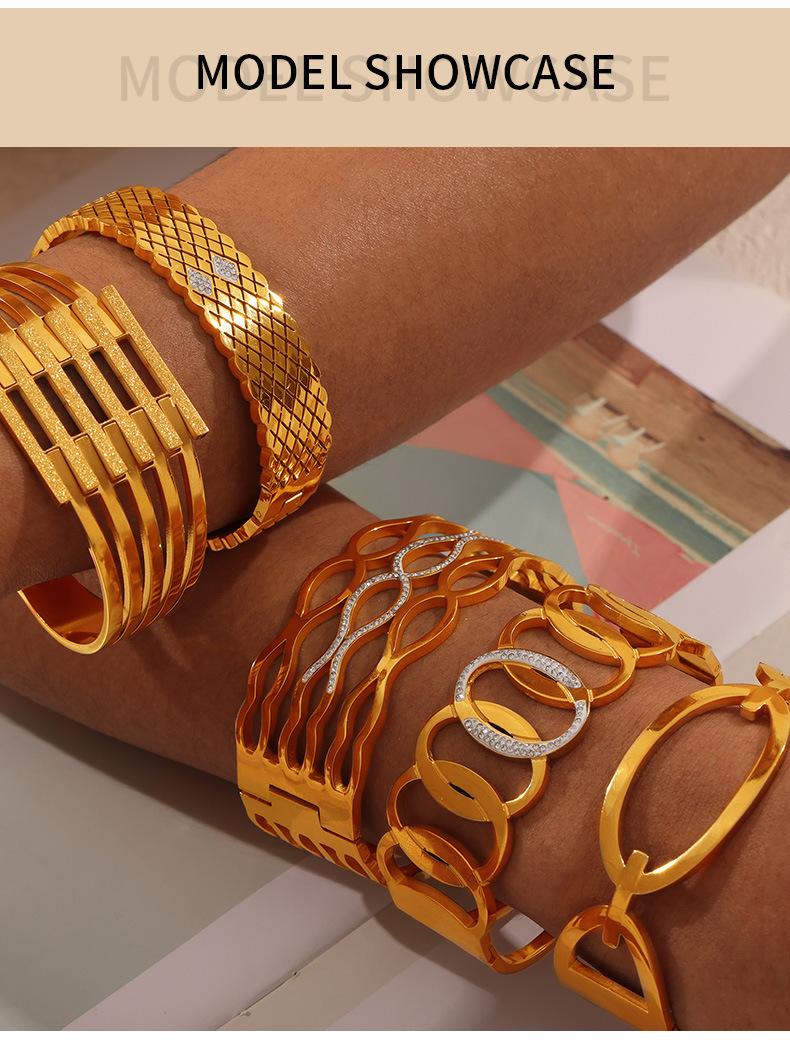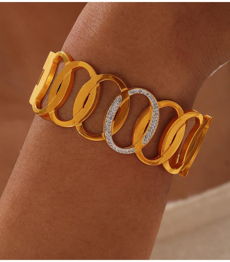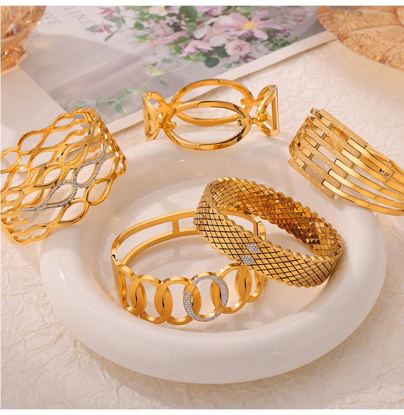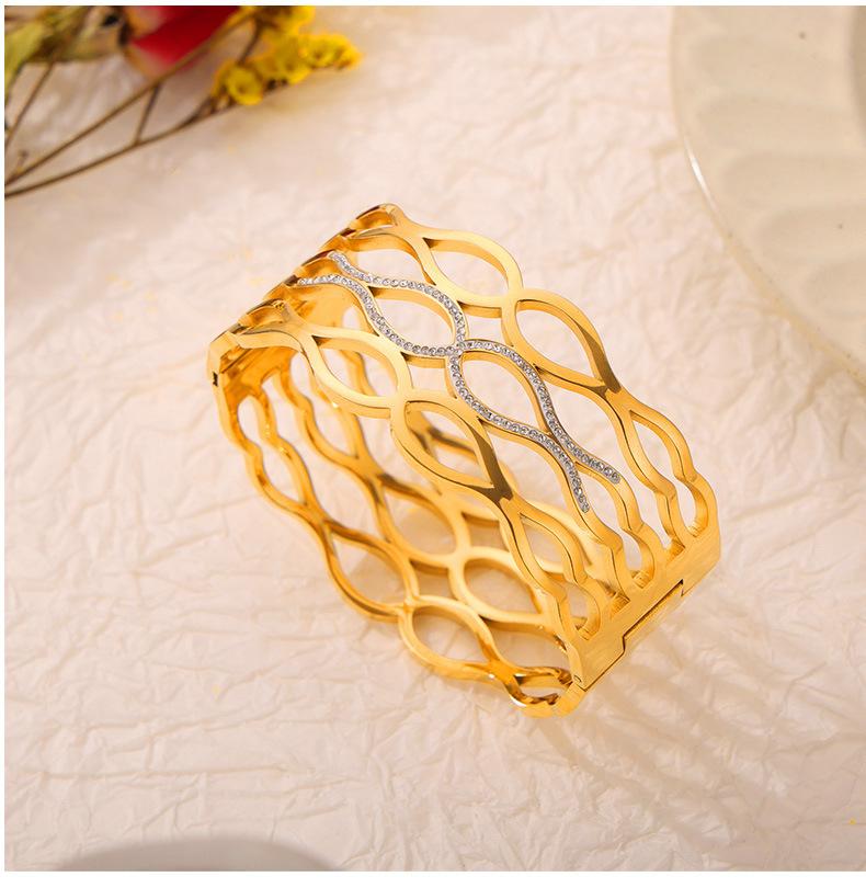 Pulsera de moda europea y americana de metal acero titanio para mujer diseño geométrico Diamante Hebilla de resorte pulsera hueca serie de costura multicapa
