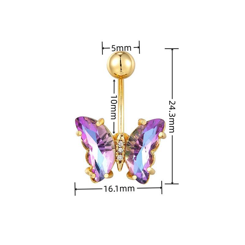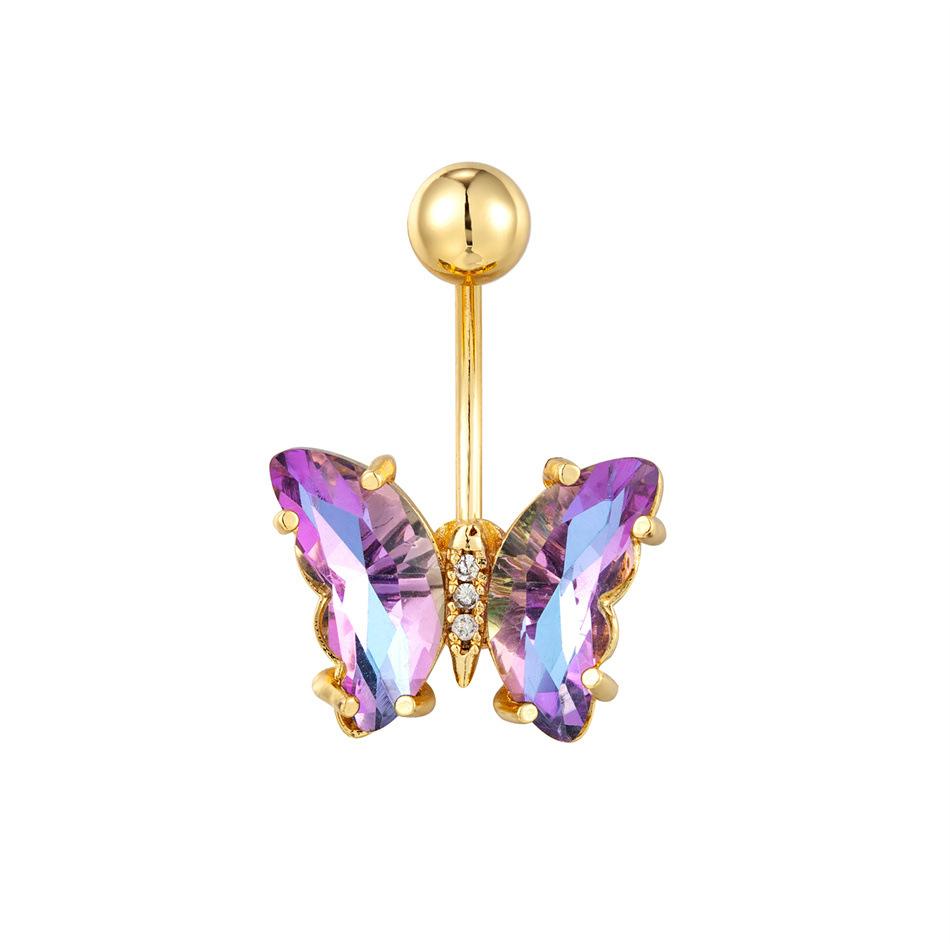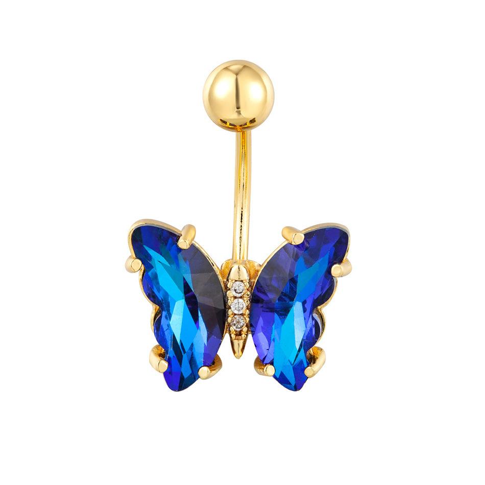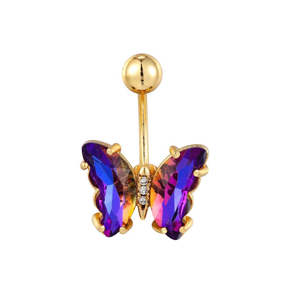 Amazon Mariposa Uña para Ombligo Multicolor Zirconia Colorida Anillo para Ombligo Acero Inoxidable Transfronterizo Fabricante de Joyería para Perforaciones