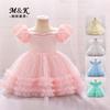 Vestido de niña con borde cruzado, sin espalda, con lazo grande, de malla, de princesa, para bebé, cumpleaños, flores, para niña, vestido de boda