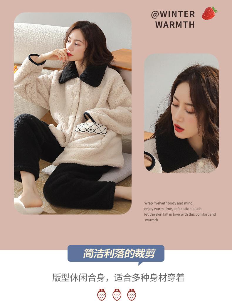Pijamas de Terciopelo de Cordero para Mujer Invierno 2024 Nuevo Terciopelo Coral Espesado Cálido y Lindo Ropa para el Hogar Traje de Ropa Exterior para Niñas