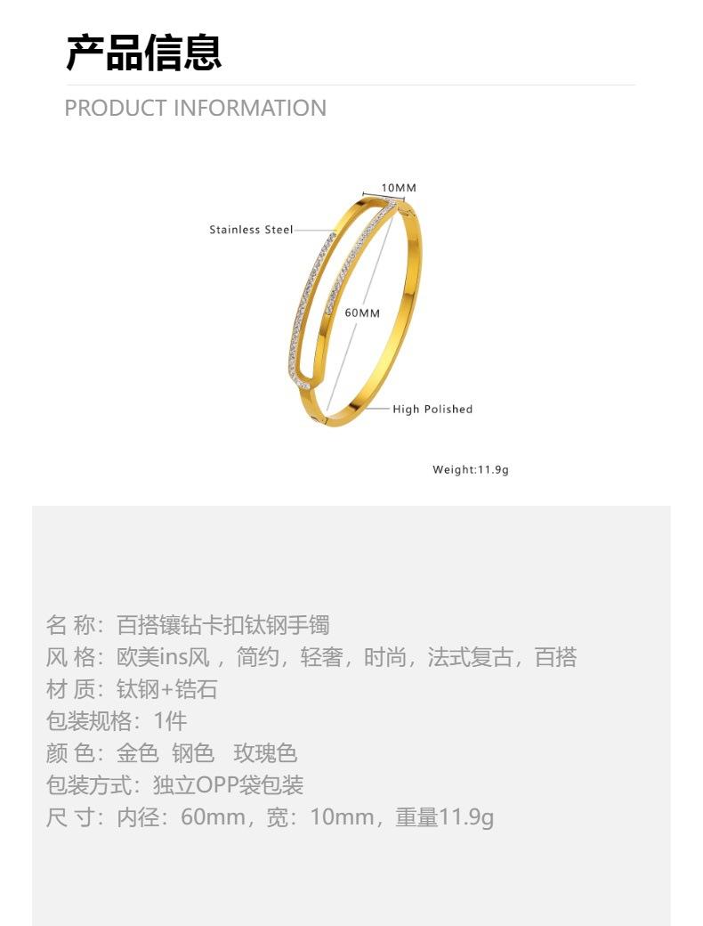 European and American retro high-grade gold diamond buckle stainless steel bracelet women wholesale custom