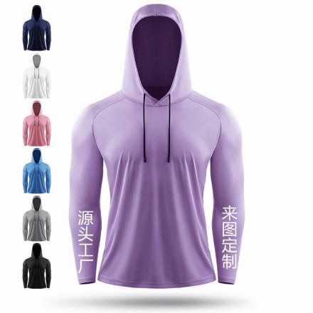 Camiseta de manga larga con protección solar de comercio exterior personalizada para hombre, chaqueta de secado rápido, sudadera holgada para correr, entrenar y fitness