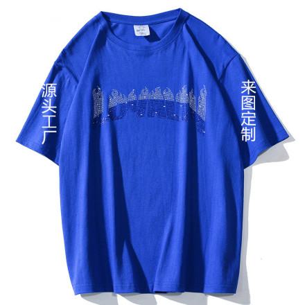 Camiseta de manga corta de algodón personalizada con estampado de diamantes para hombre y mujer, estilo urbano, camisetas informales holgadas de algodón. Fábrica de procesamiento.