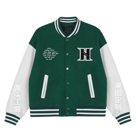 Uniforme de béisbol de tendencia nacional personalizado, chaqueta de retazos con bordado de toalla y letras, ropa de abrigo para hombre, uniforme de béisbol holgado verde retro de hip-hop