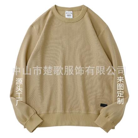 Sudadera de cuello redondo con estampado de gofre de comercio exterior personalizada, holgada, de manga larga, con logotipo personalizado de marca de moda retro americana, sudadera de cuello redondo para hombre