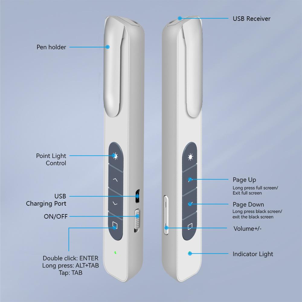 Bolígrafo dedicado transfronterizo nuevo recargable de batería de litio PPT bolígrafo abatible control remoto de demostración multimedia bolígrafo de mano