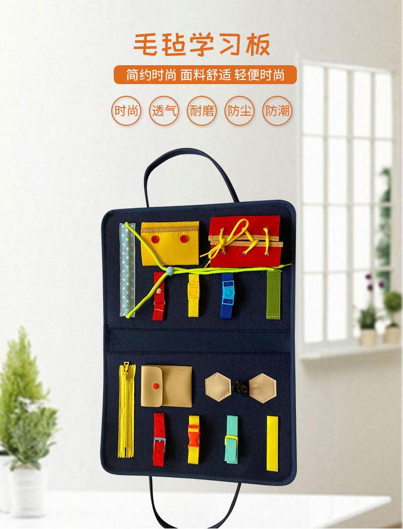 Tablero de aprendizaje de fieltro de lana personalizado de fábrica, juguetes educativos para la vida temprana de los niños, juguetes de vestir extraíbles hechos a mano