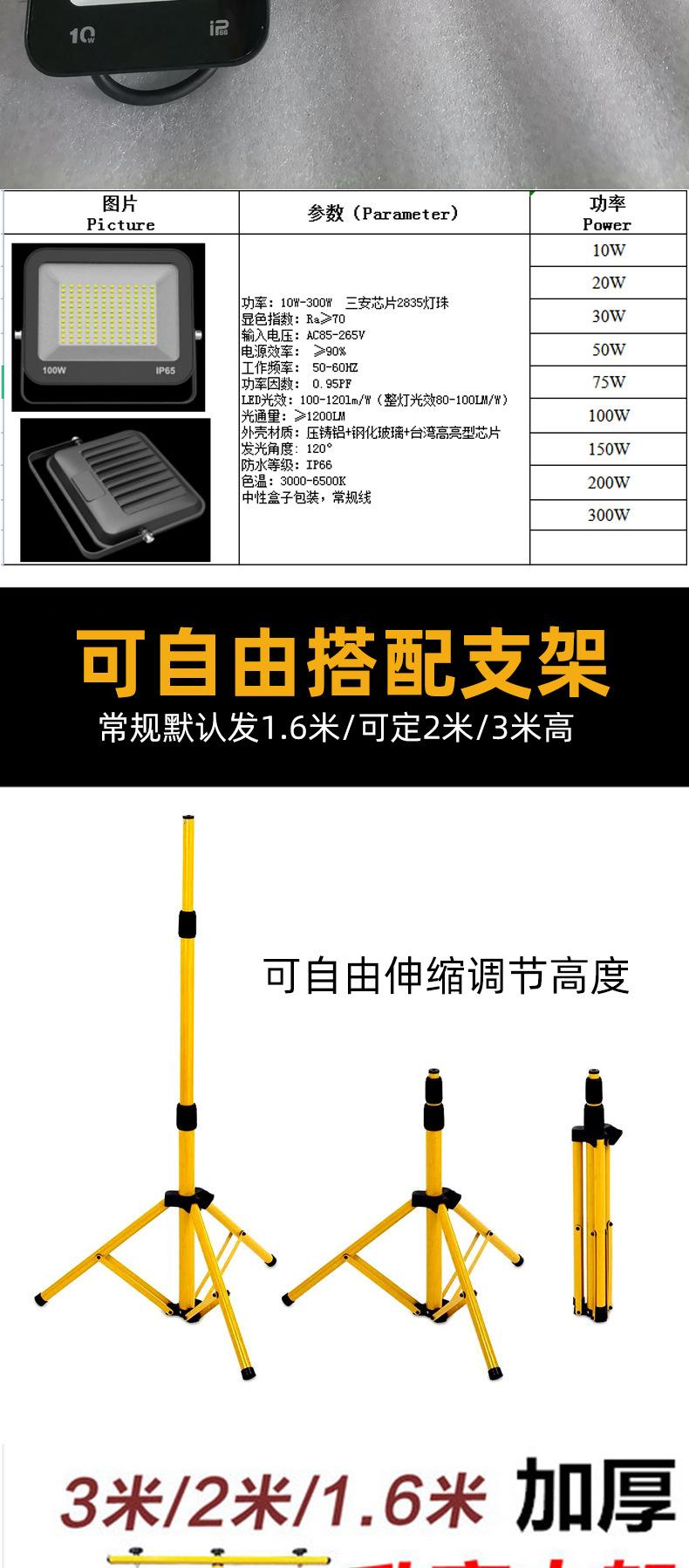 Movable work light (75w*3+ 1.6m conventional telescopic bracket), Movable work light (75w*3+ 2m conventional t...