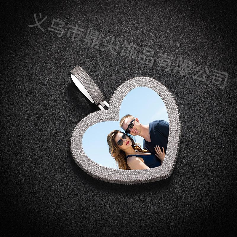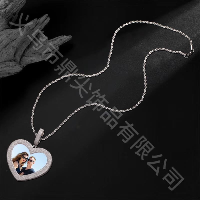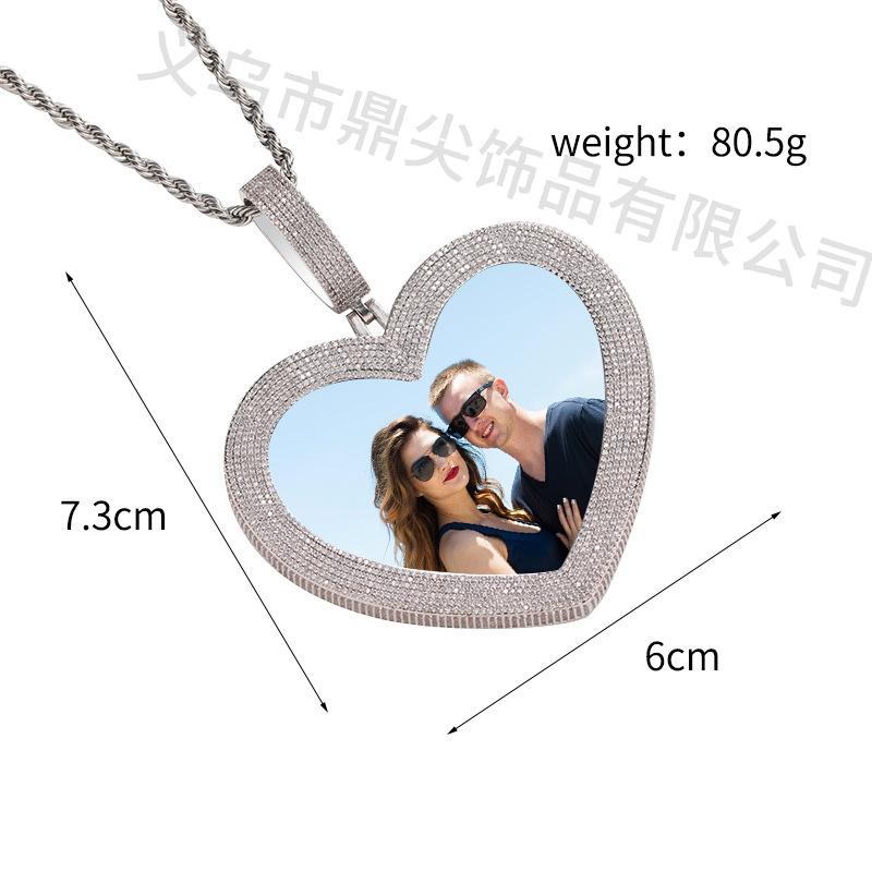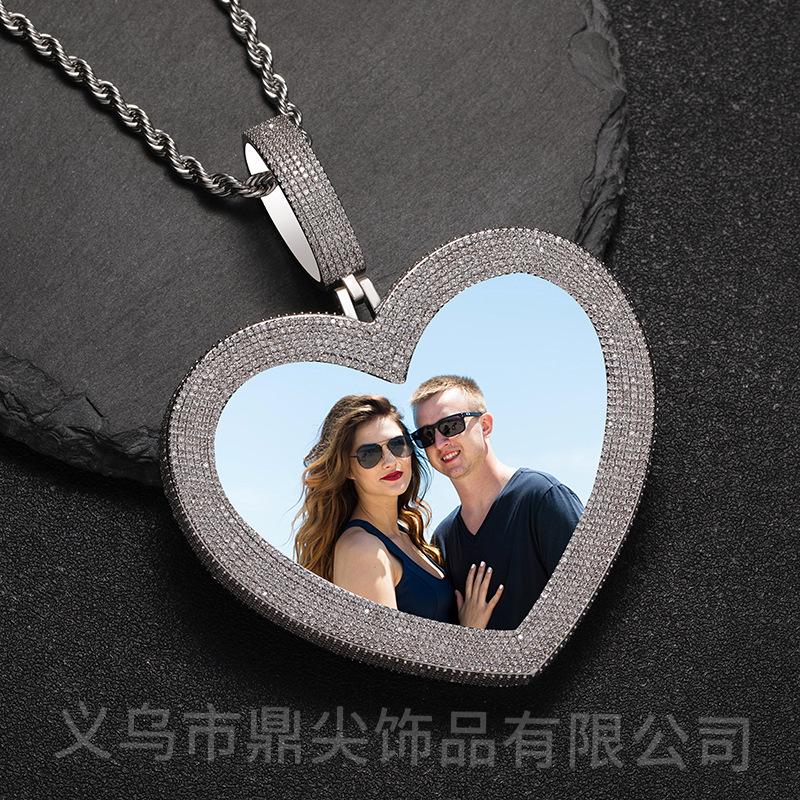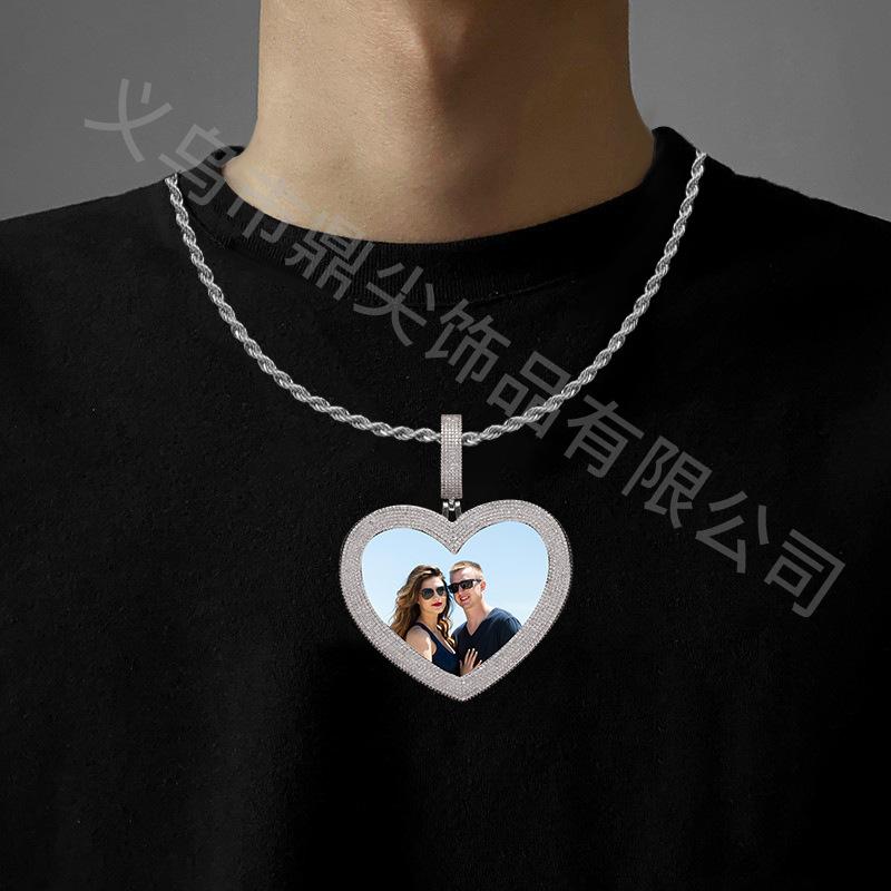 Collar con forma de corazón transfronterizo europeo y americano de alta calidad, personalizado con foto, estilo hip hop y circonitas, ¡lo más vendido en 2024!