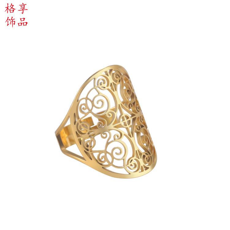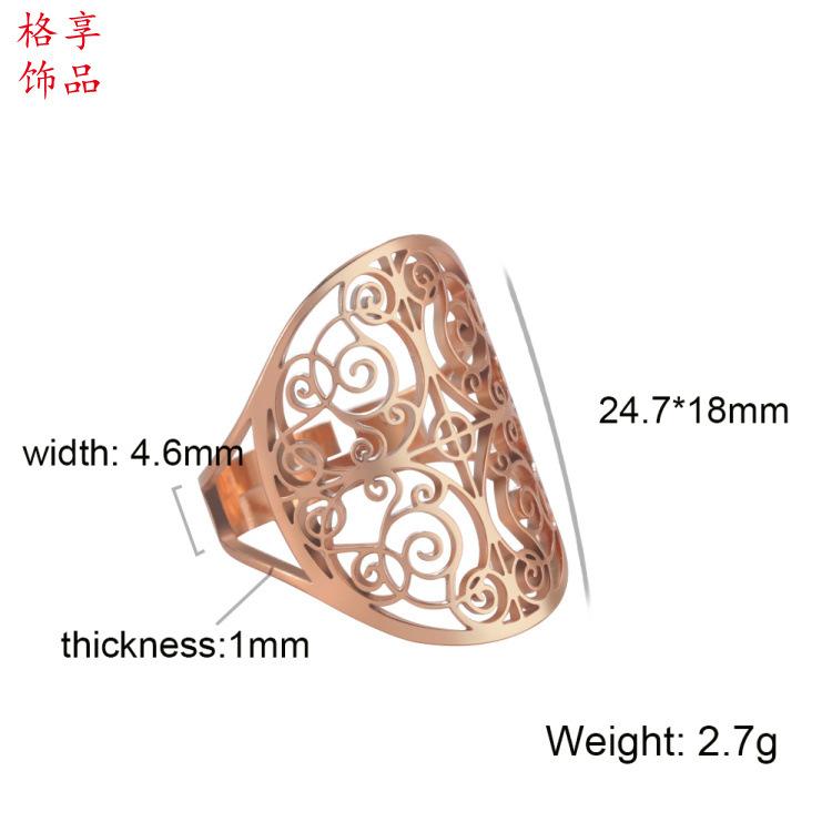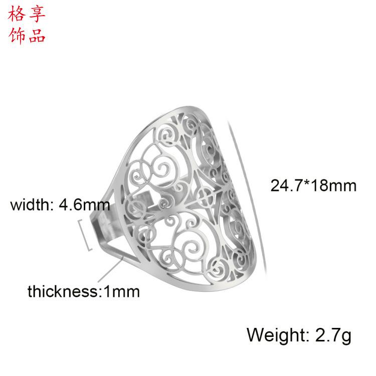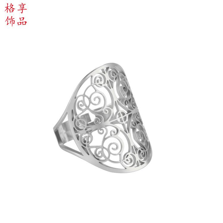 Exportación de comercio exterior caliente Viento nórdico acero de titanio corte hueco Flor Baro Oval acero inoxidable anillo de apertura