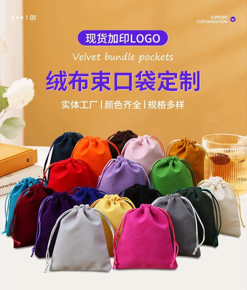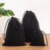 Bolsa de lona con cordón y logotipo personalizado, de forro polar negro, con cordón, para joyería