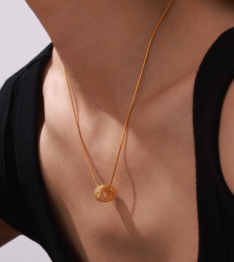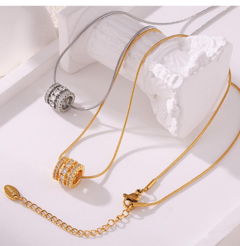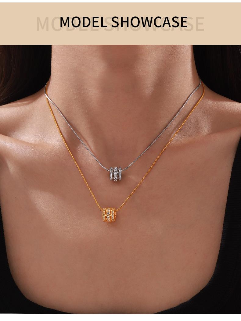 Colgante de cadena de clavícula de acero y titanio con diamantes de cobre, diseño de nicho simple, estilo retro francés, ligero y lujoso, joyería al por mayor