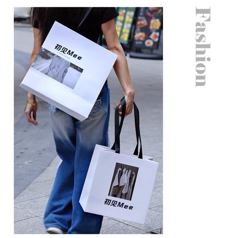 Bolsa de Mano para Tienda de Ropa Estilo Coreano Estilo Ins, Bolsa de Regalo Simple de Alta Gama, Bolsa de Papel para Compras de Centro Comercial de Moda Personalización