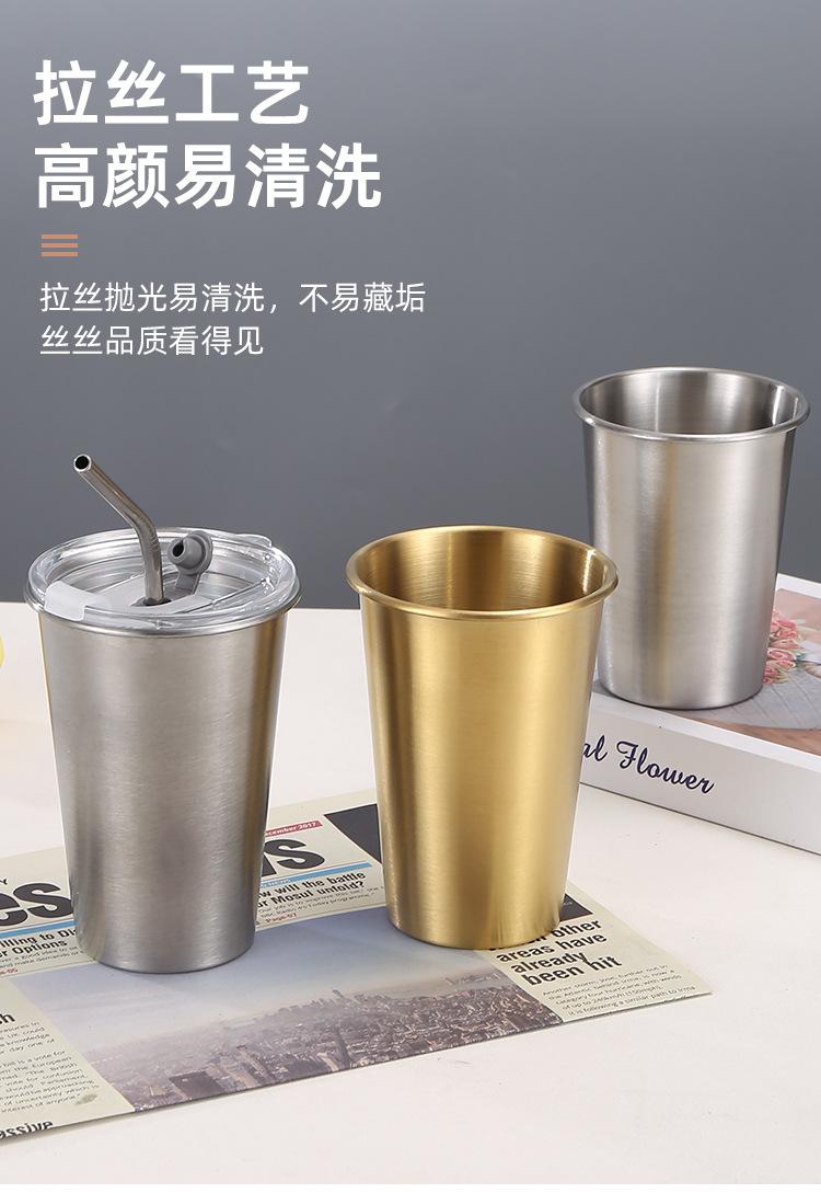 Vaso de cerveza de acero inoxidable 304, anticaída, comercial, de una sola capa, informal, para jugo, café, bebida fría, venta al por mayor