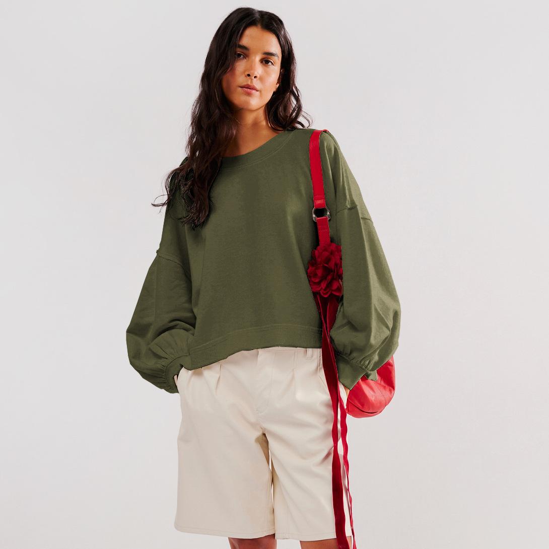 Suéter de manga larga con cuello redondo y mangas abullonadas para mujer, estilo europeo y americano, de alta calidad, para primavera y otoño, 2024