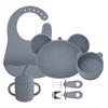 A3 Earth gray suit (Bib + dinner plate + water cup + stainless steel fork spoon + Bowl)