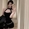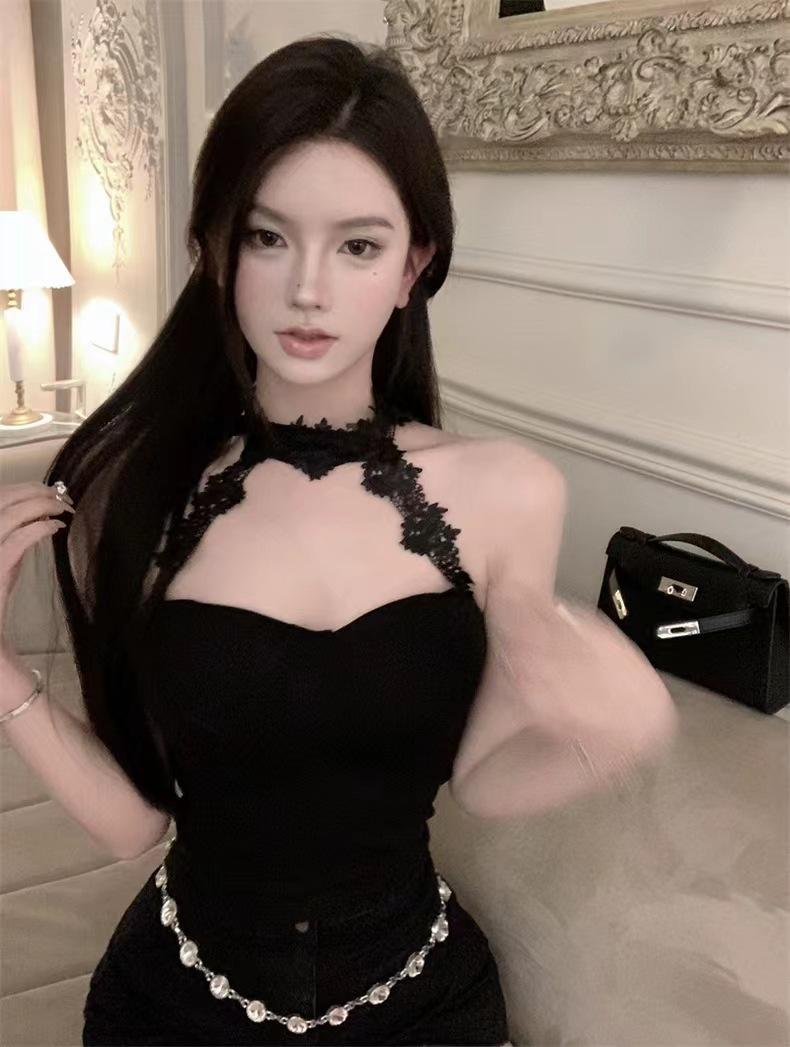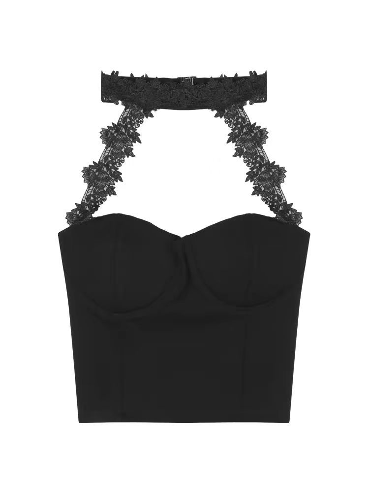 Camisola de cuello alto con tirantes finos para mujer, ropa interior de verano, top corto de encaje ajustado, estilo Spice Girl
