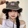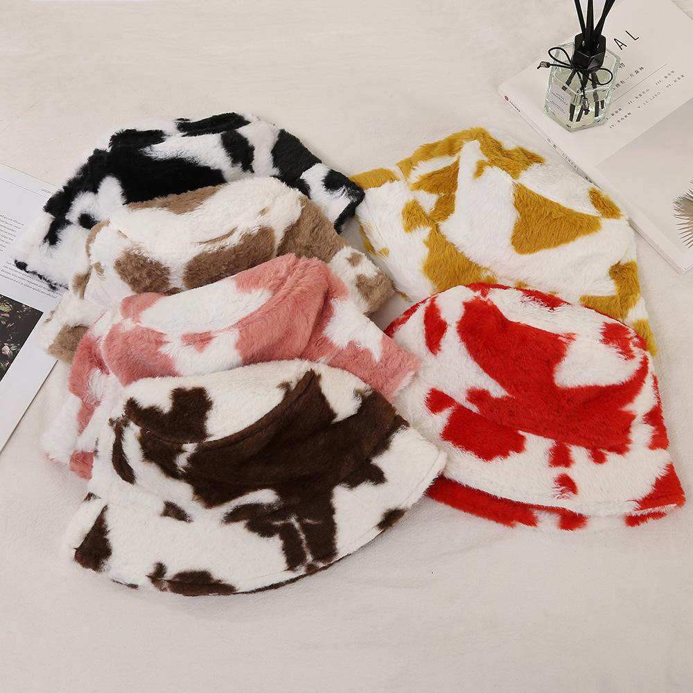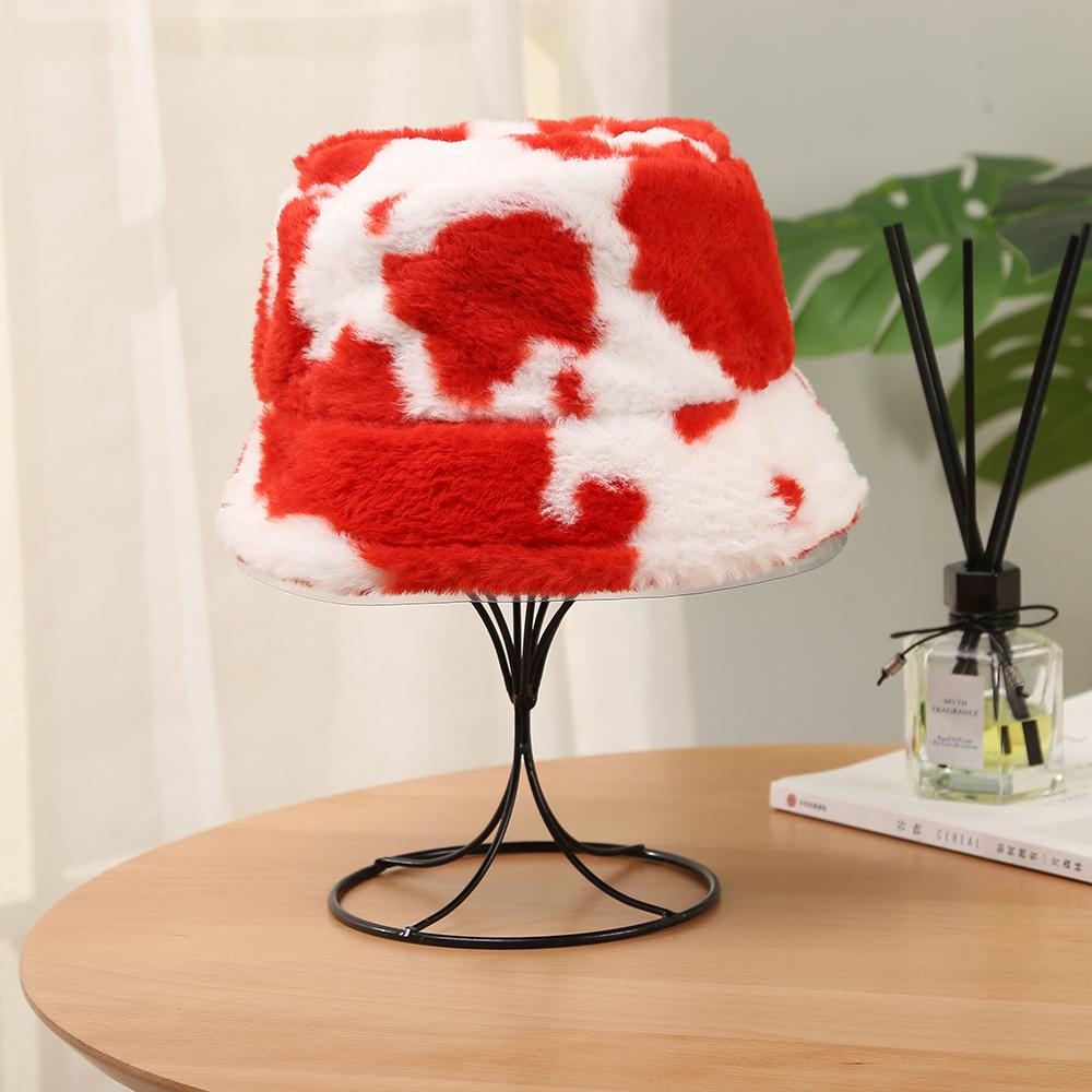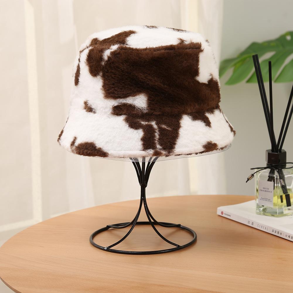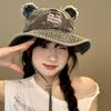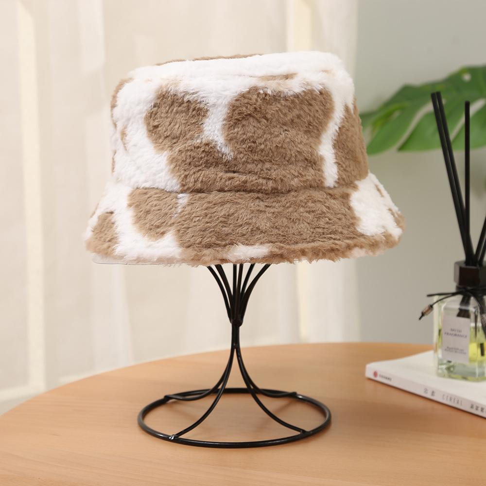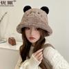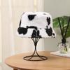 Sombrero de pescador de otoño e invierno, de felpa de cordero, con protección para las orejas, con bonito estampado lácteo japonés, pequeño