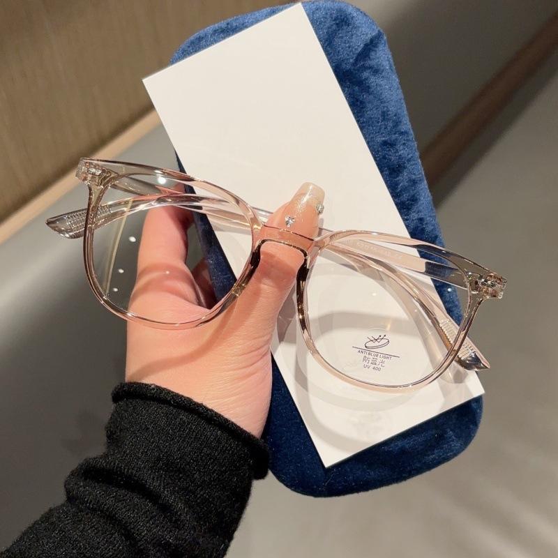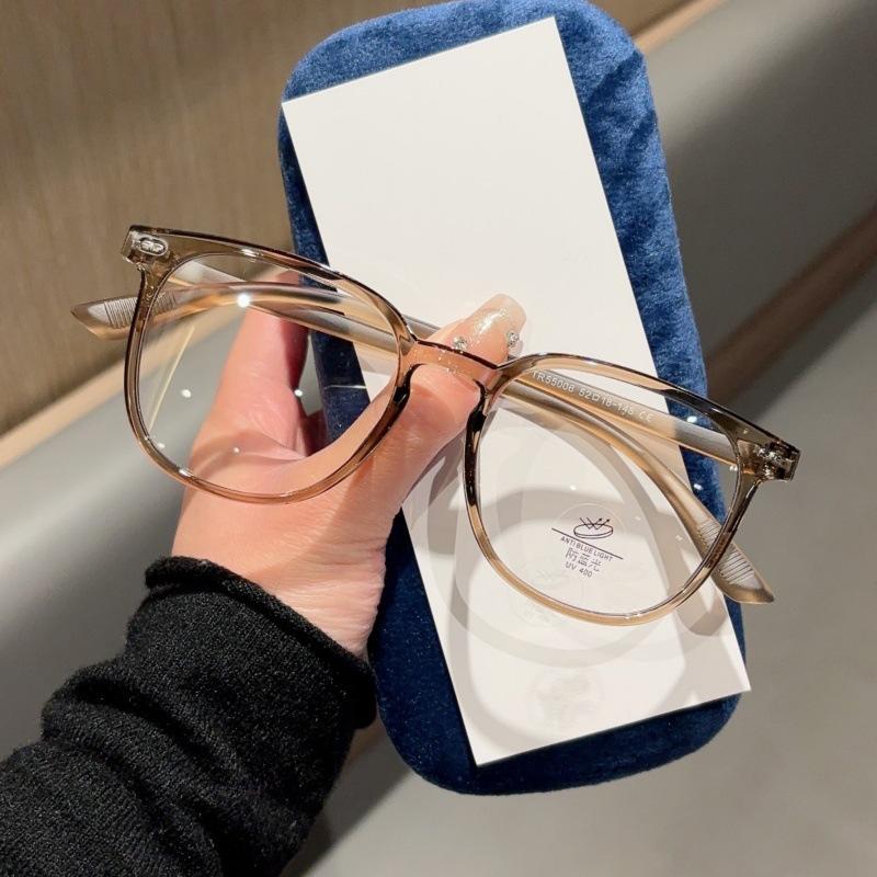 Gafas para miopía con montura grande, personalizadas, retro, con acabado transparente y antiluz azul, para hombres y mujeres.