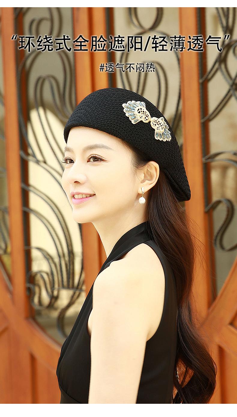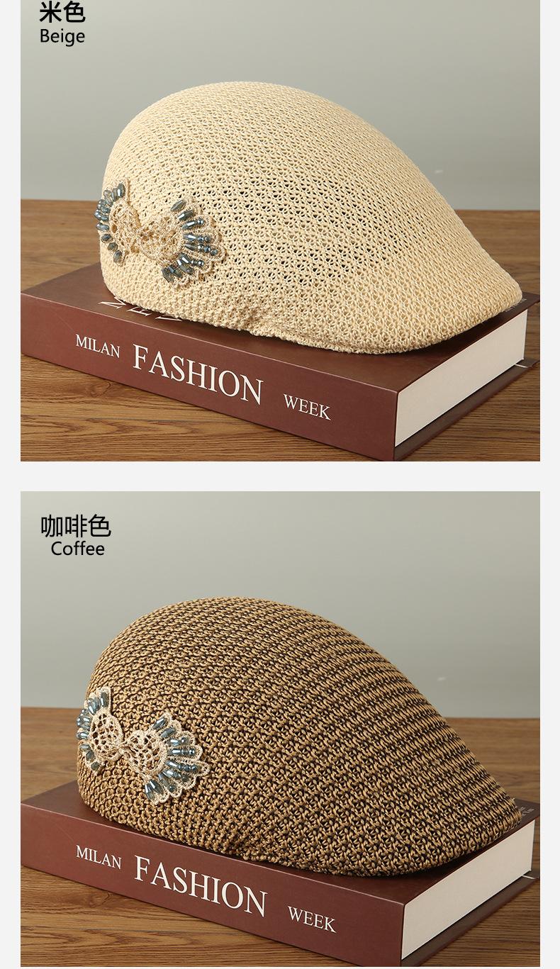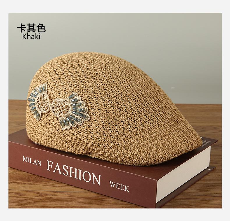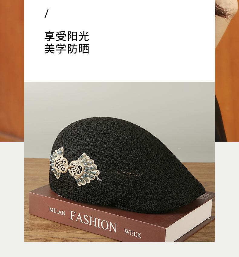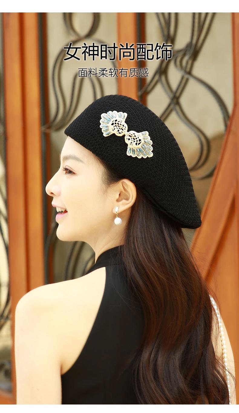 Gorra Delantera Tejida con Lazo Hueco Estilo Japonés para Mujer Primavera y Verano Nuevo Estilo Elegante Combinable Boina Reversible