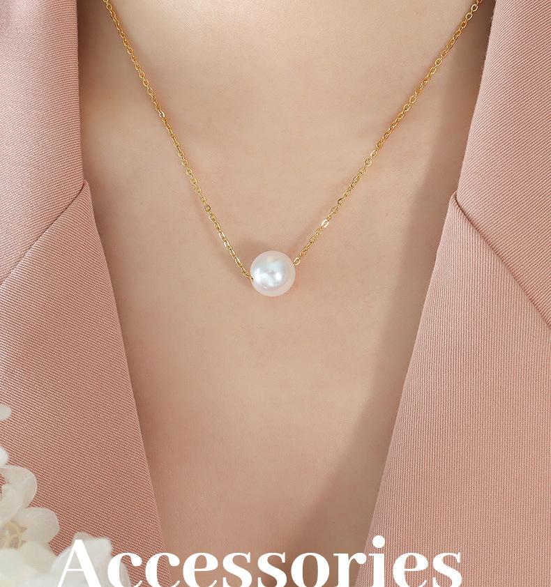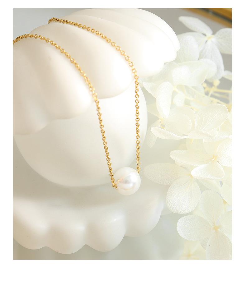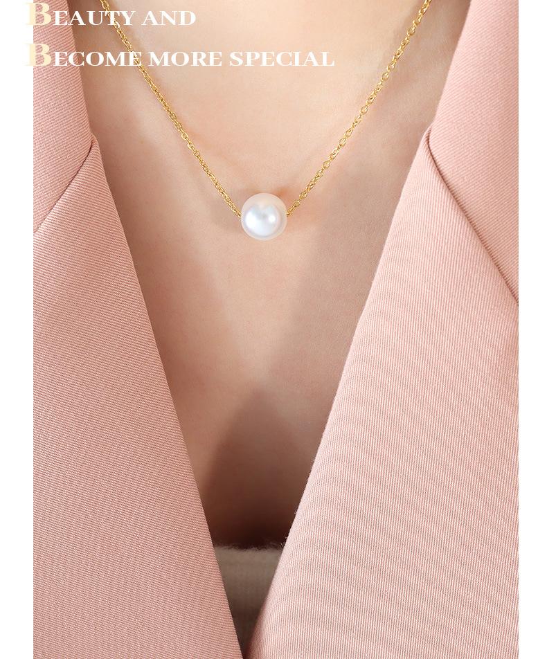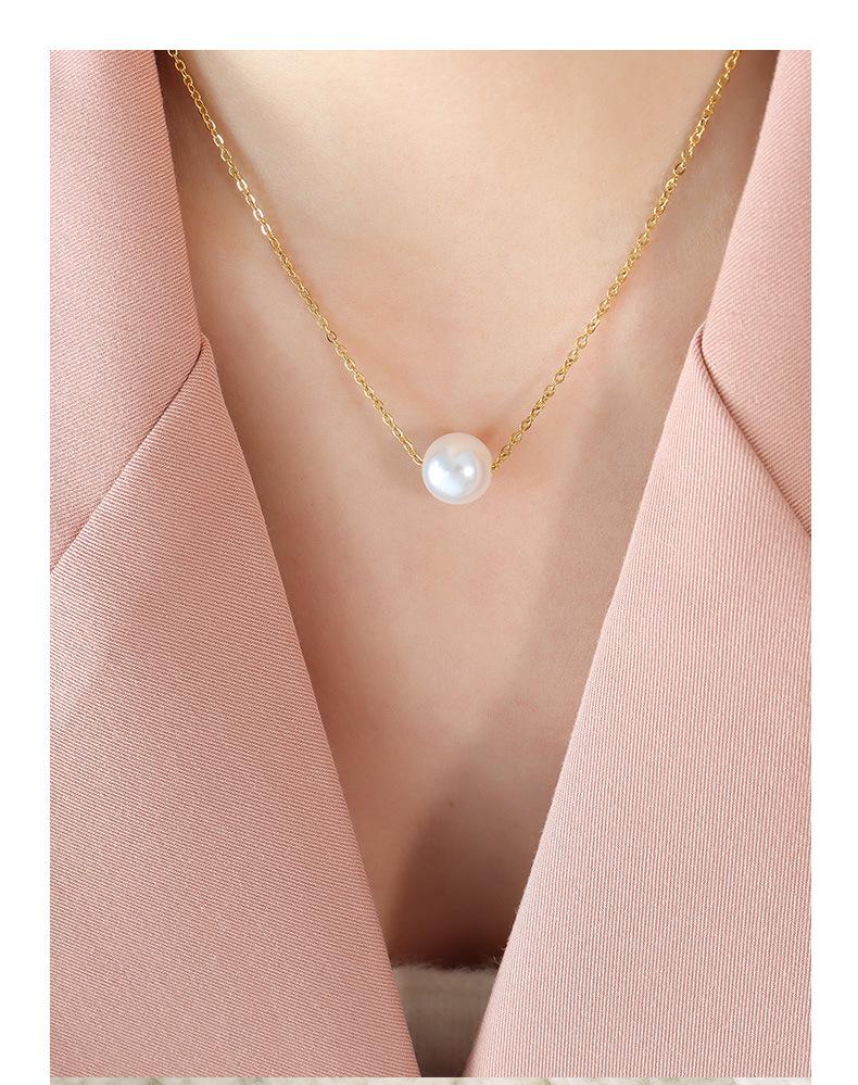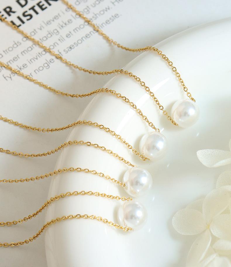 Collar con colgante de perla de imitación, cadena de clavícula de acero de titanio chapada en oro de 18 quilates, diseño de nicho resistente a la decoloración, joyería al por mayor