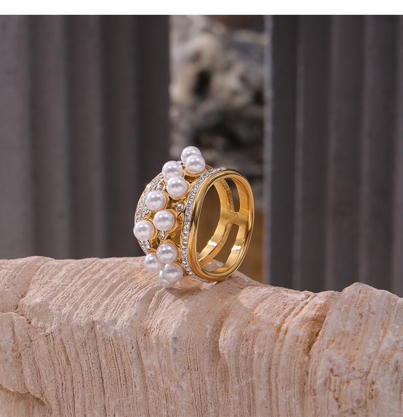 Anillo de Acero de Titanio con Cuentas de Zirconia Micro-incrustada Simple Estilo Japonés-Coreano Lujo Ligero Sentido del Diseño Nicho Celebridad de Internet Anillo Combinable