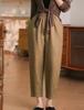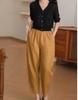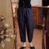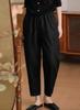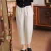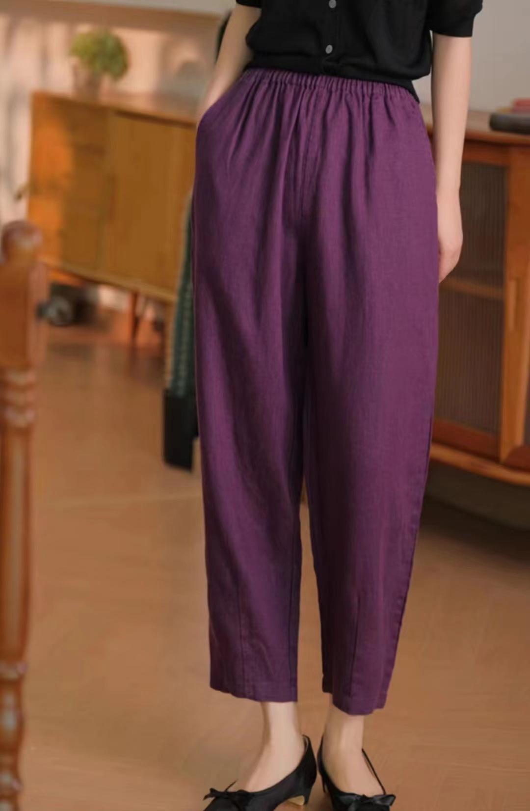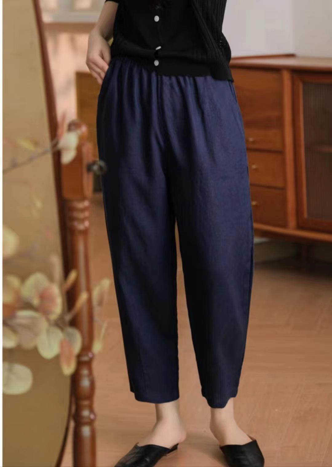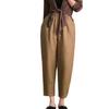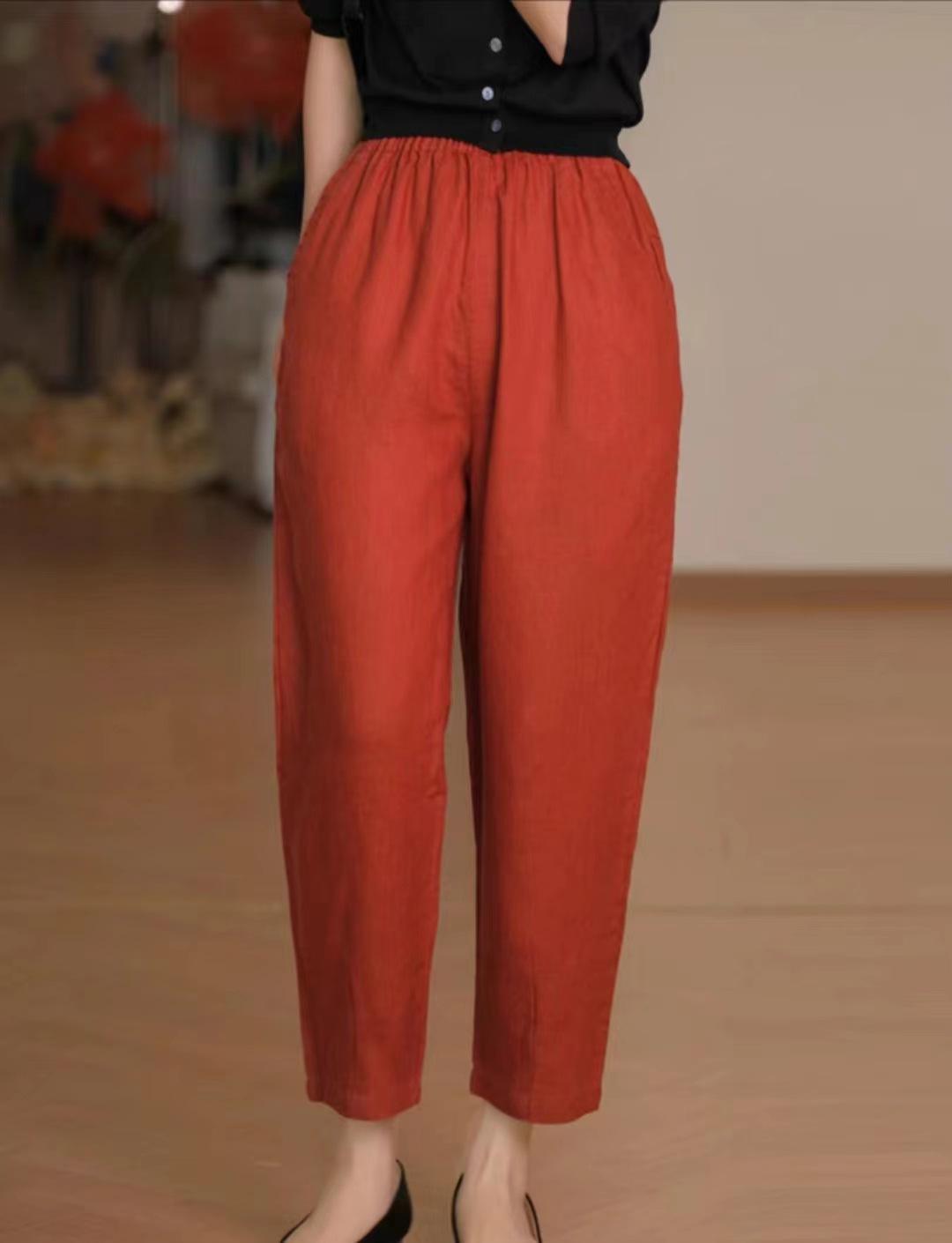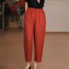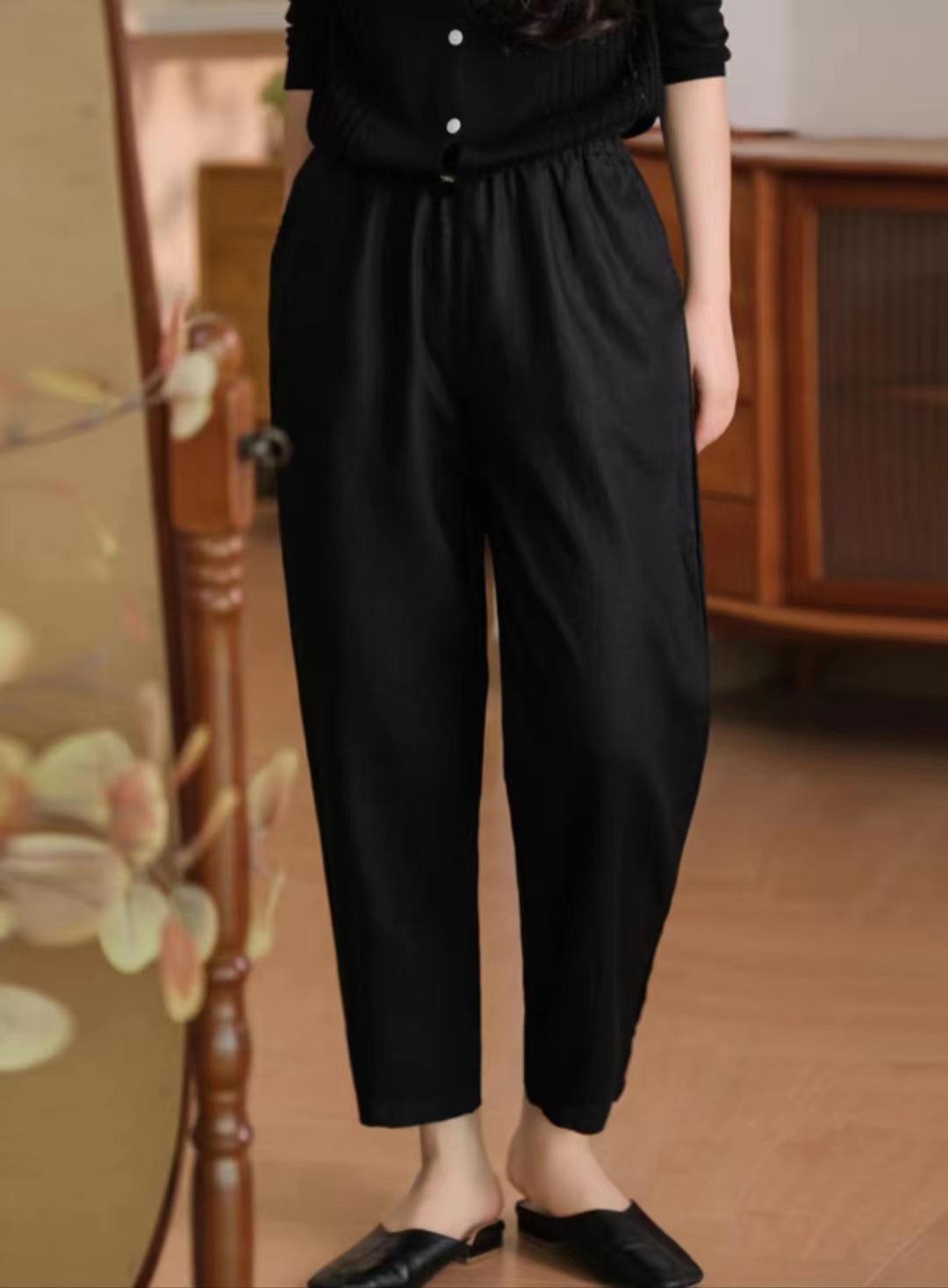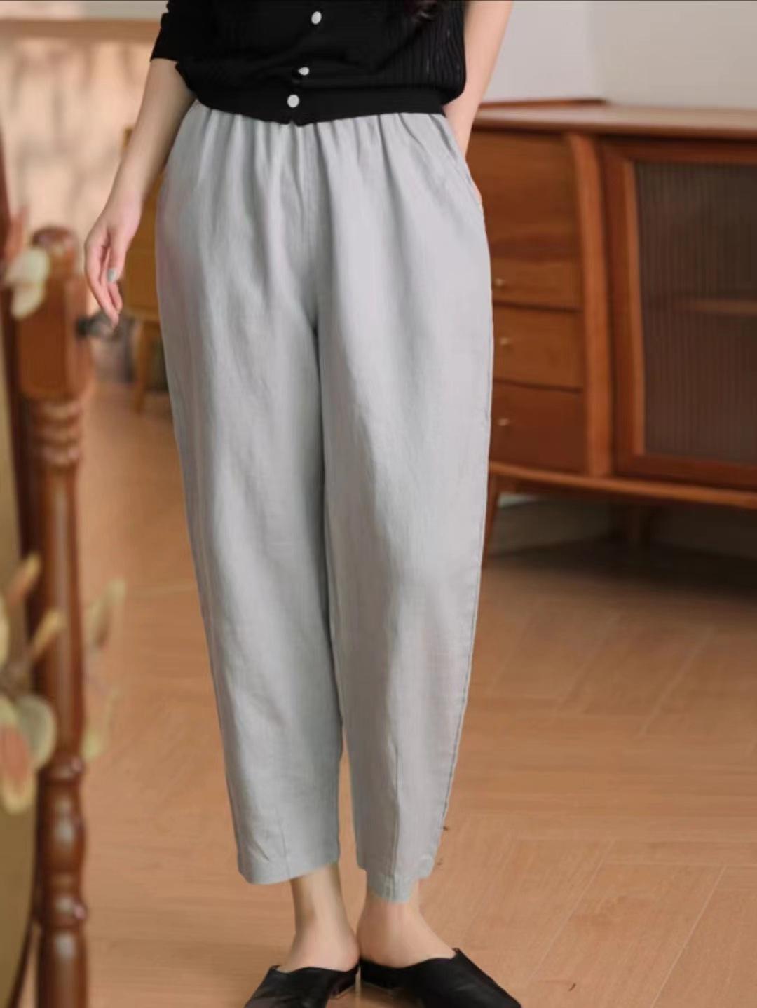 Pantalones casuales sencillos de color sólido para mujer, cintura elástica, moda artística, adelgazantes, de lino suelto, novedad de verano de 2024