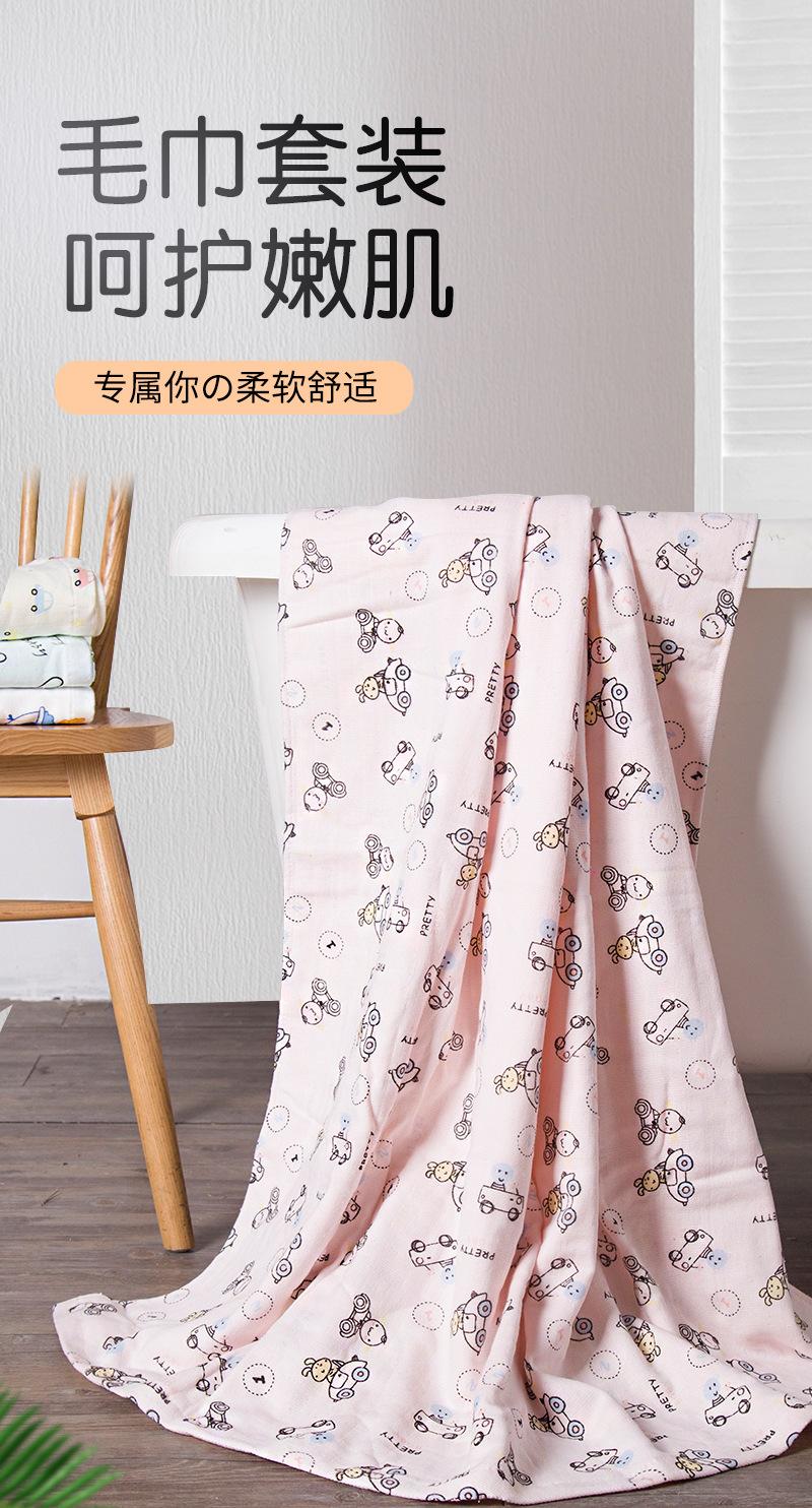 Toalla de baño de gasa sin torsión de algodón para bebé, conjunto de tres piezas, bolsa de baño suave para recién nacidos, manta para niños