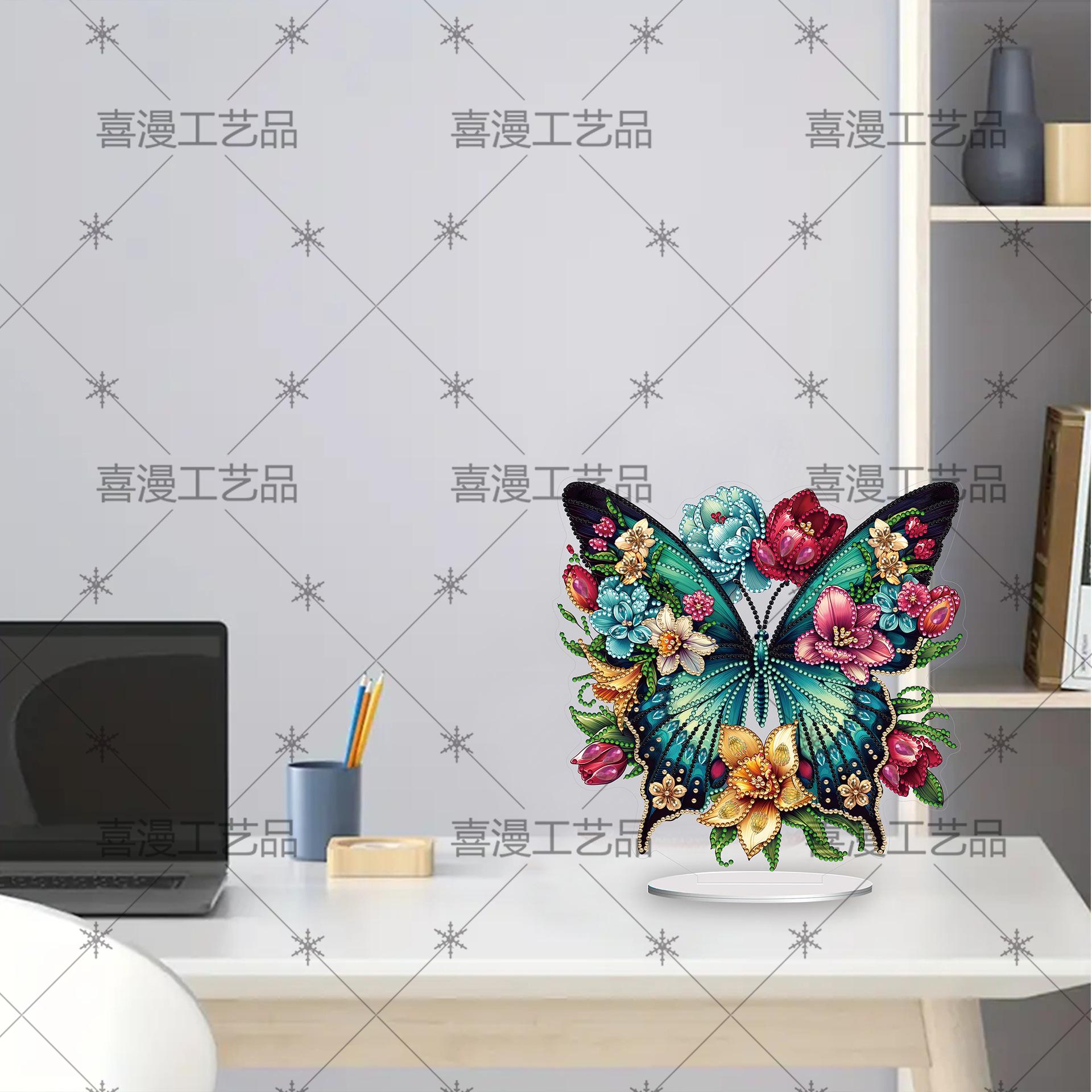 Pintura de diamante redondo con adornos de flores y mariposas acrílicas estéreo 5D transfronterizas, pintura de diamante