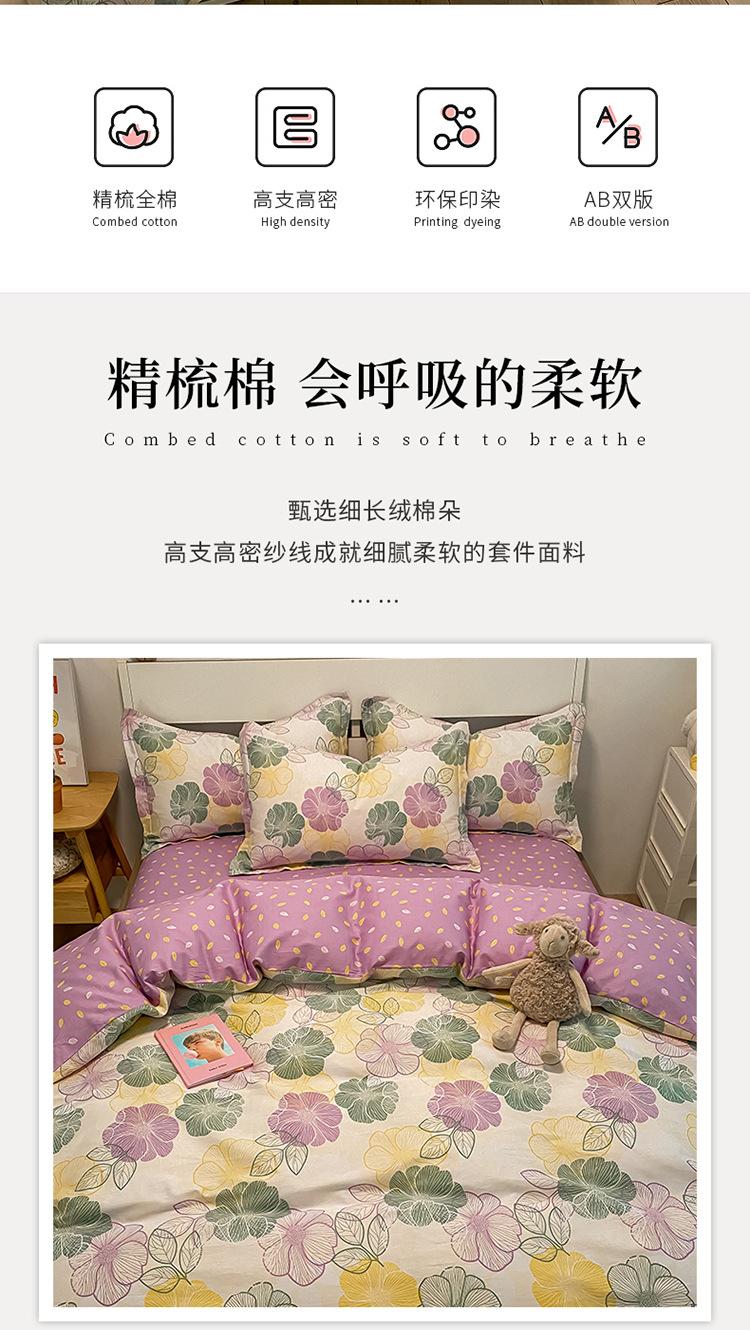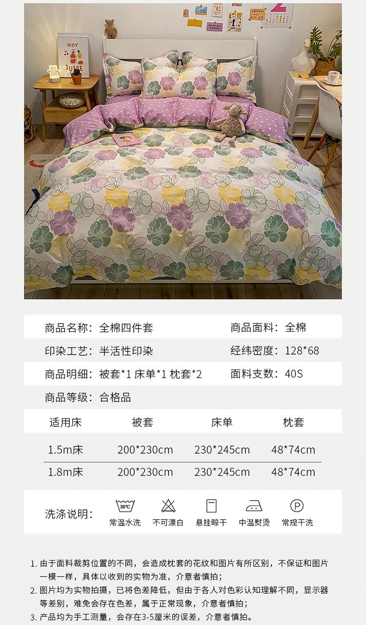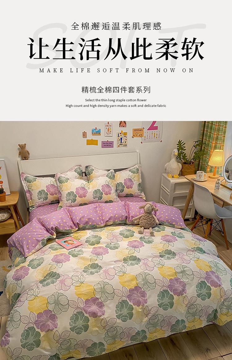 Juego de cama de algodón de cuatro piezas para cama doble, sábana, funda de edredón, individual para dormitorio de estudiante de 4 piezas 2024 nuevo