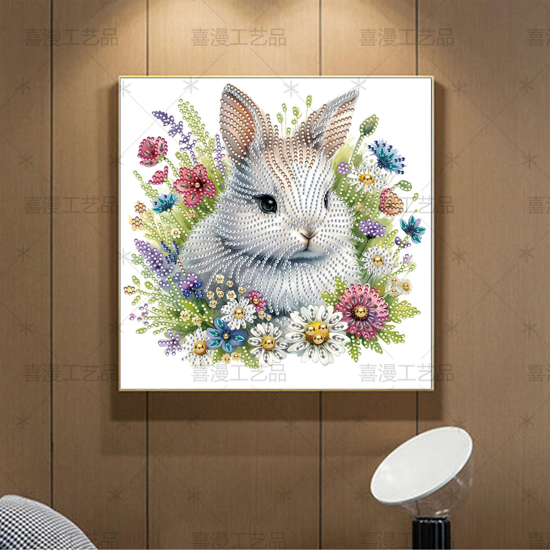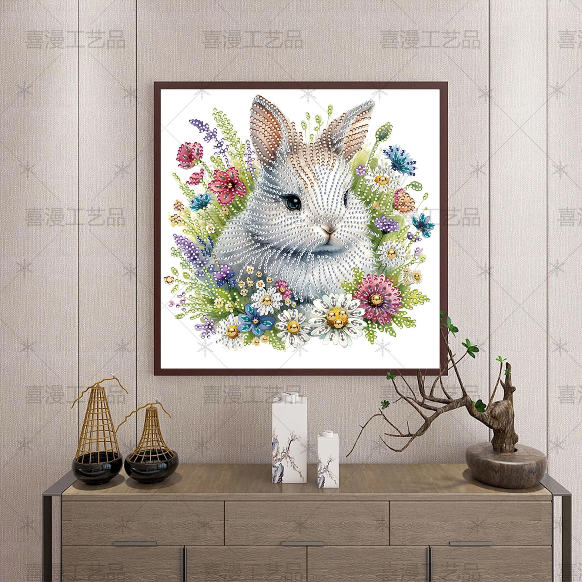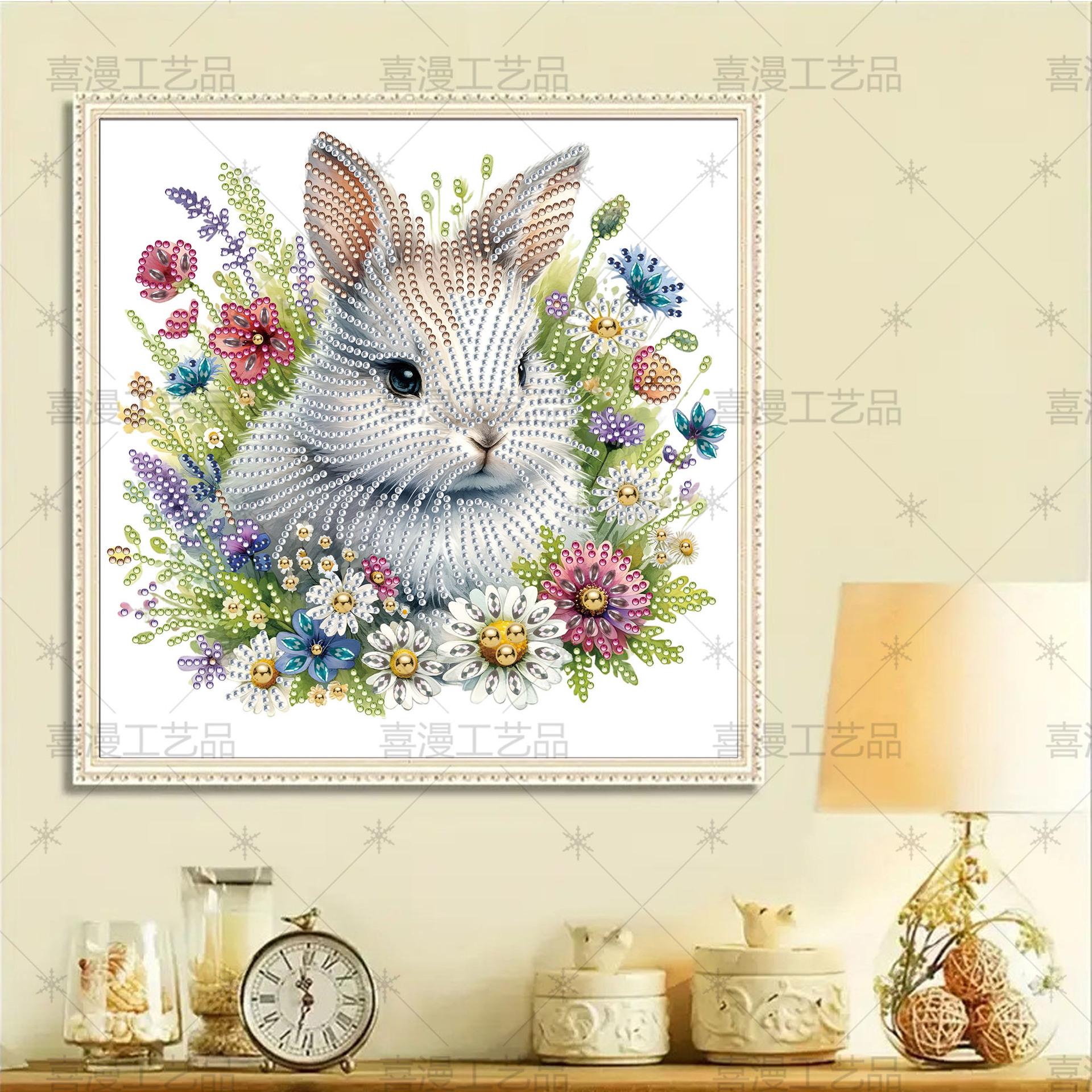 Kit de pintura de diamantes 5D con diseño de conejo, ideal para decorar el hogar con diamantes de forma especial.