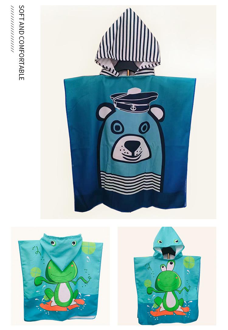 Toalla de baño con capucha para niños, toalla absorbente con estampado de dibujos animados, disponible al por mayor.