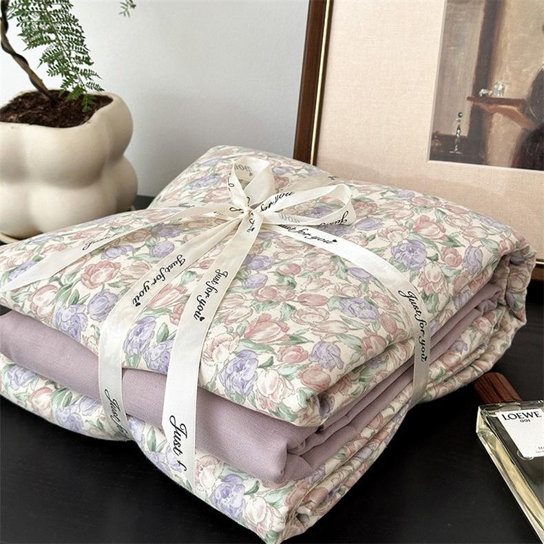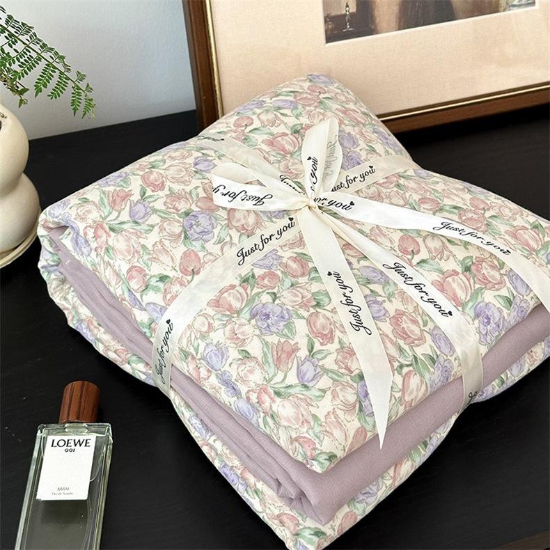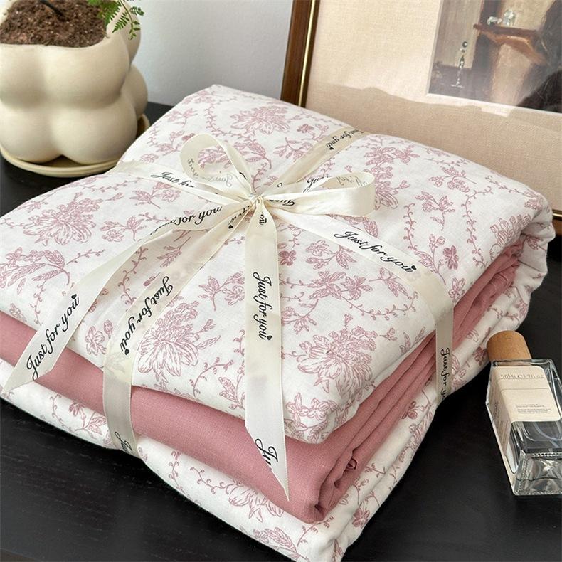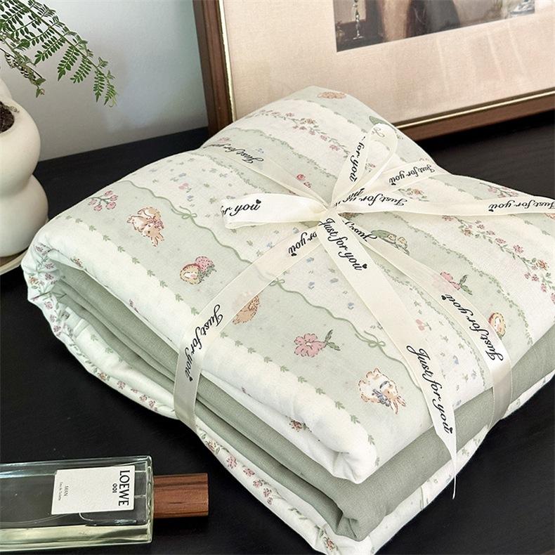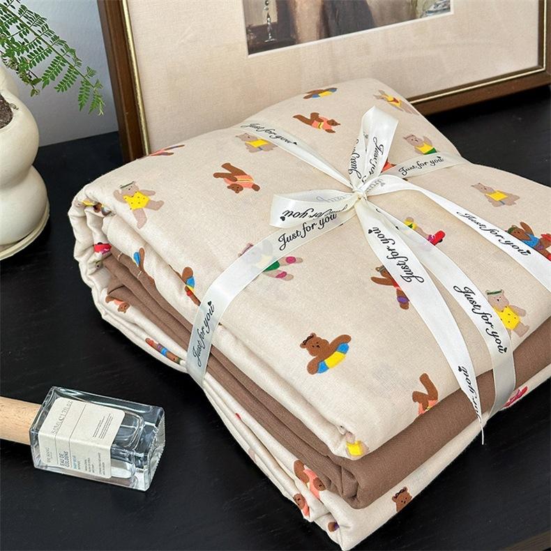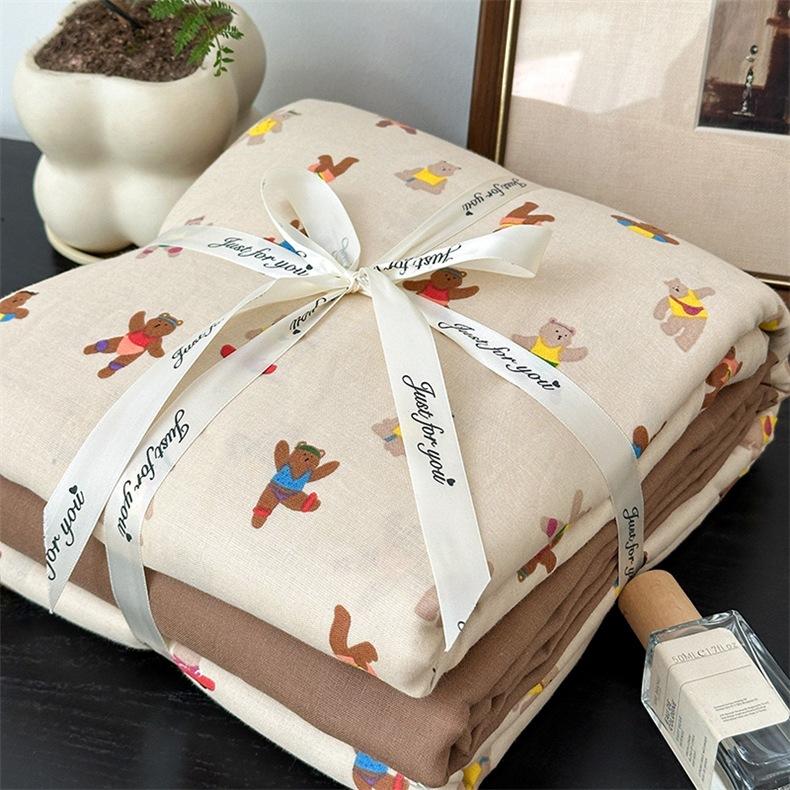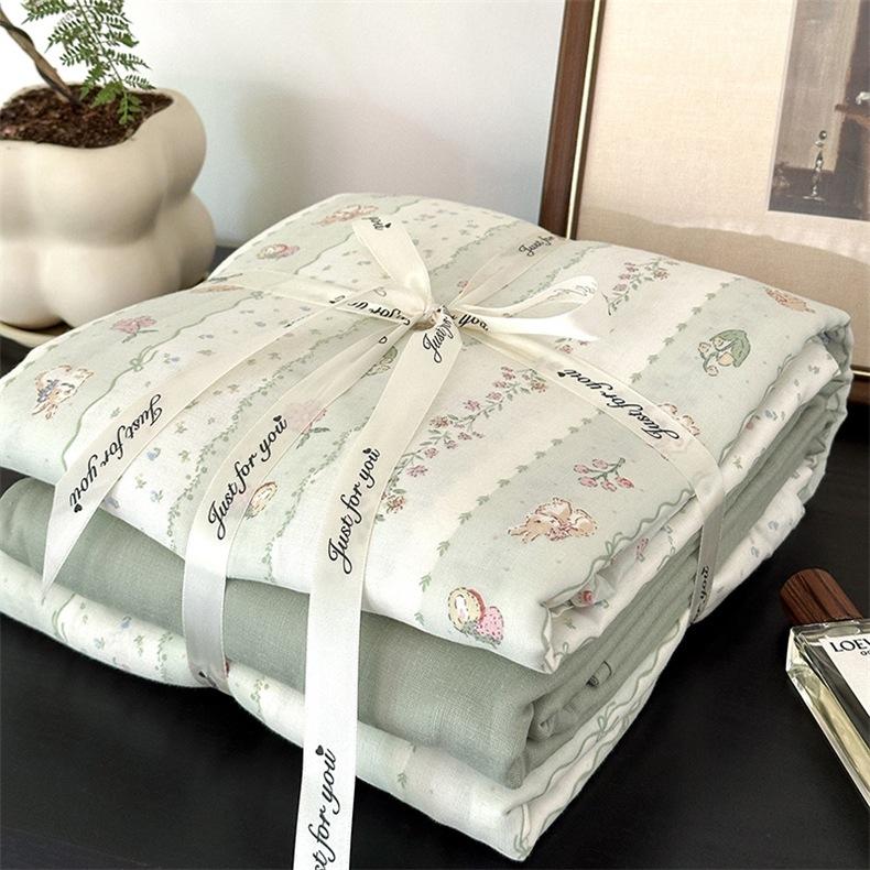 Categoría a Grado Materno e Infantil Gasa de Doble Capa de Algodón Puro Juego de Cuatro Piezas Juego de Cama de Tres Piezas para Dormitorio de Estudiantes y Niños Estilo 3Ins