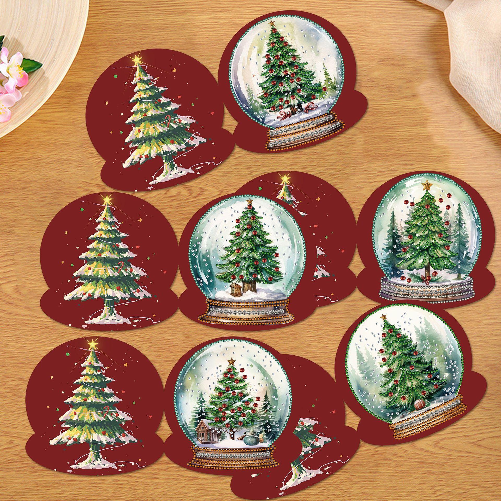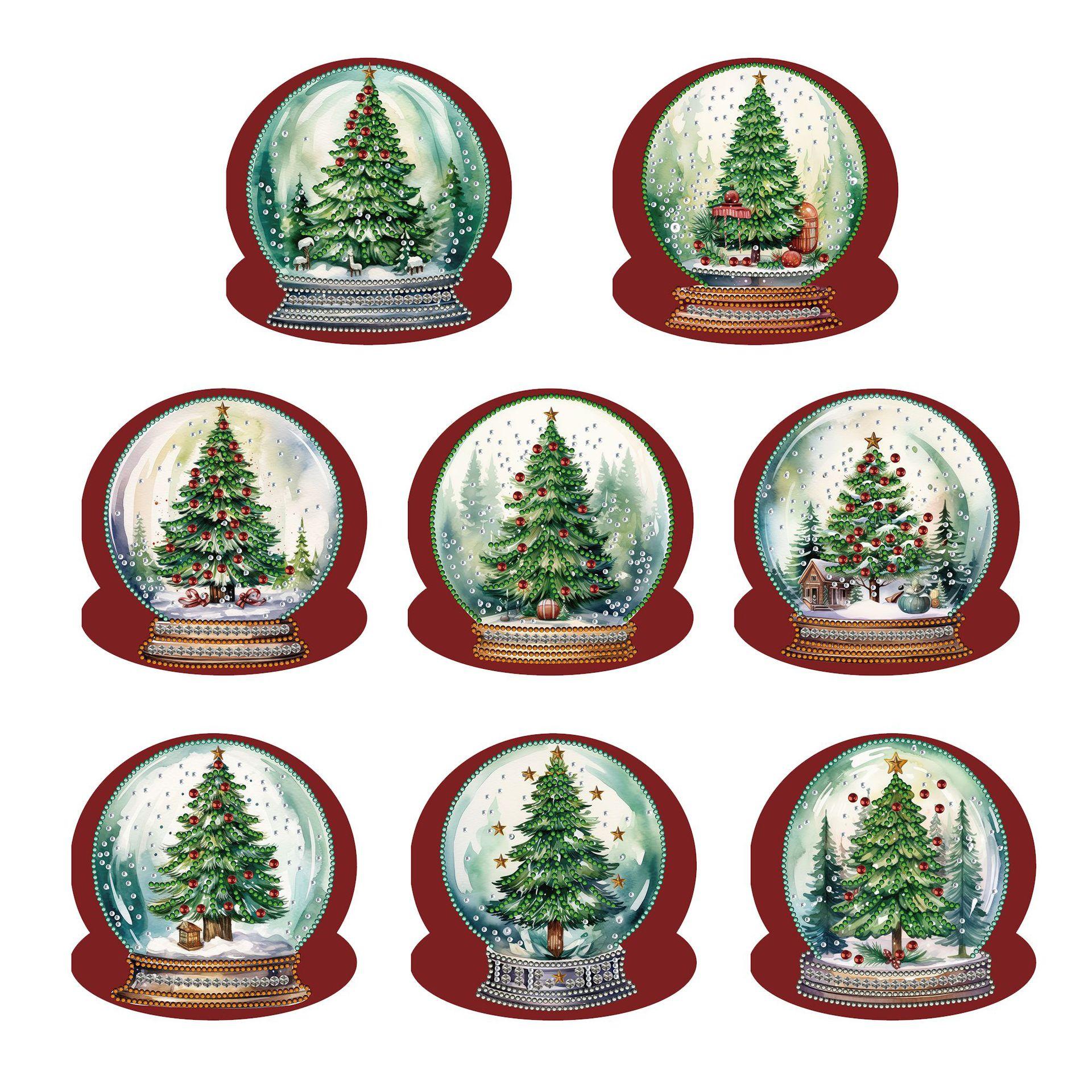 8 piezas Serie de árbol de Navidad de bola de cristal creativa transfronteriza Tarjeta de felicitación de pintura de diamantes DIY Pegatina alienígena hecha a mano