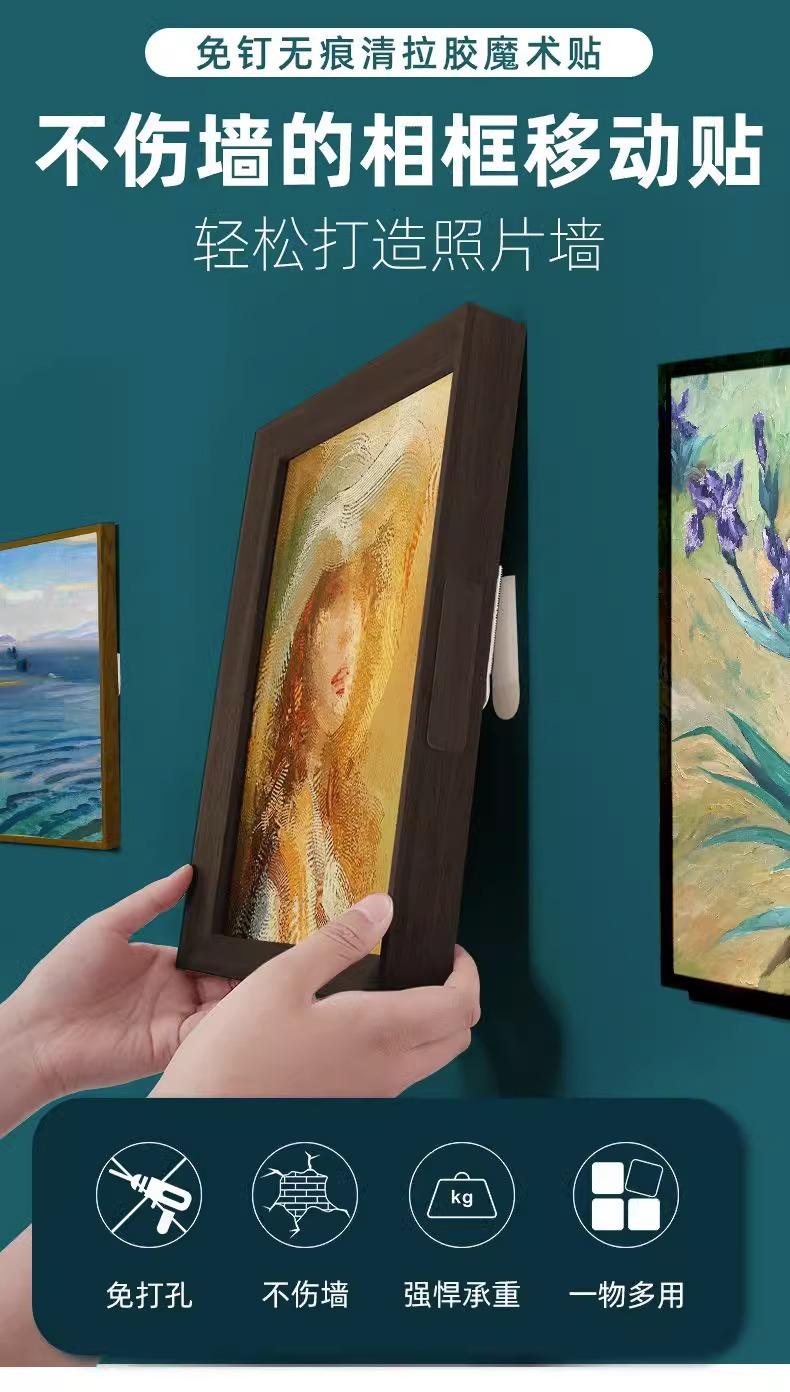 Hebilla mágica 3M sin costuras sin perforaciones adhesivo fuerte portafotos gancho para marco de fotos de pared clavo sin costuras adhesivo de doble cara velcro