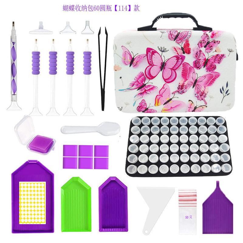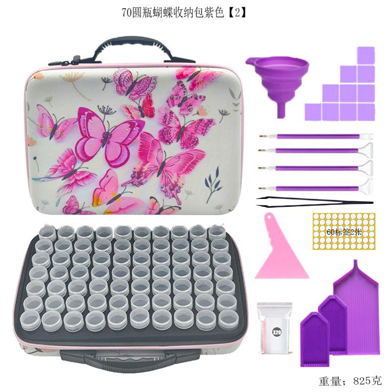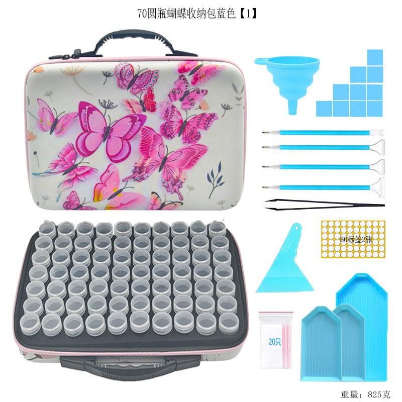 Herramienta de pintura de diamantes DIY portátil mariposa 70 botella redonda bolsa de almacenamiento taladro rápido bolígrafo herramienta combinación traje