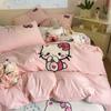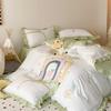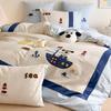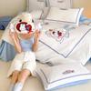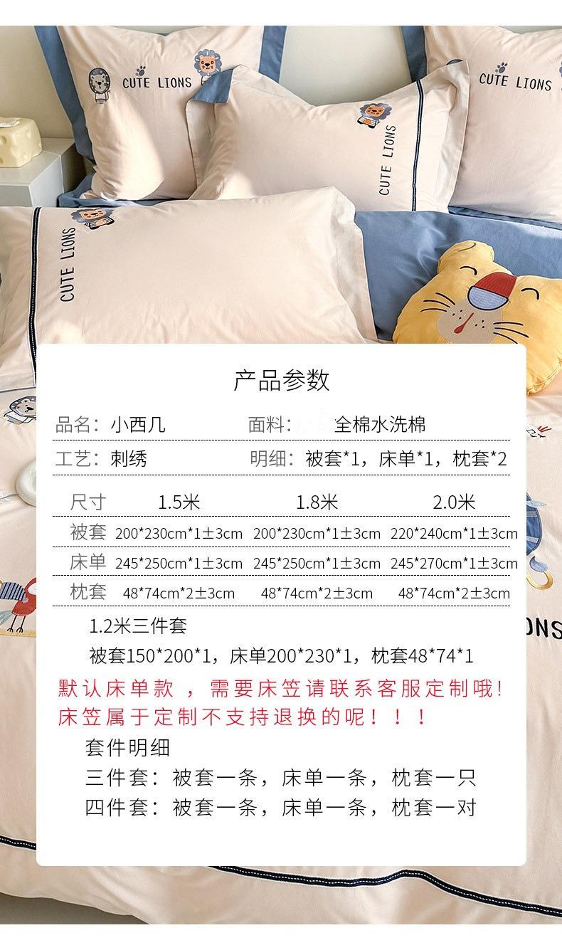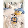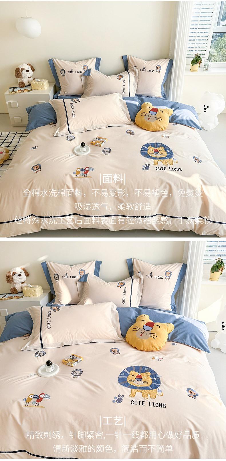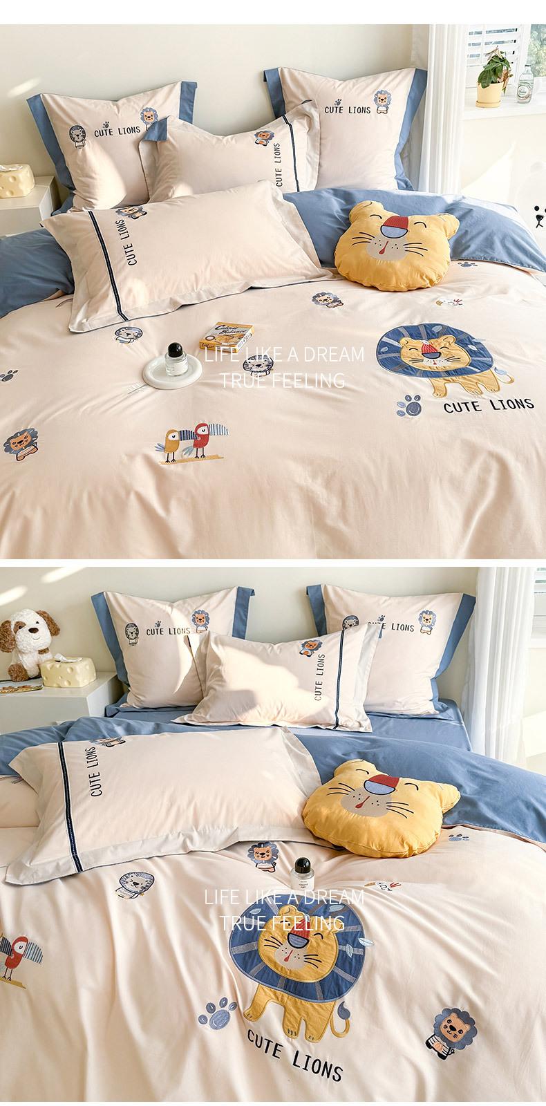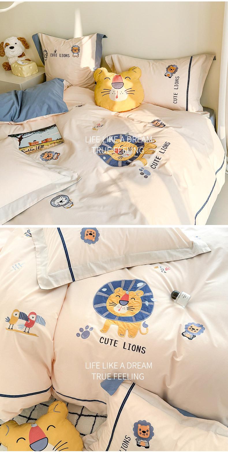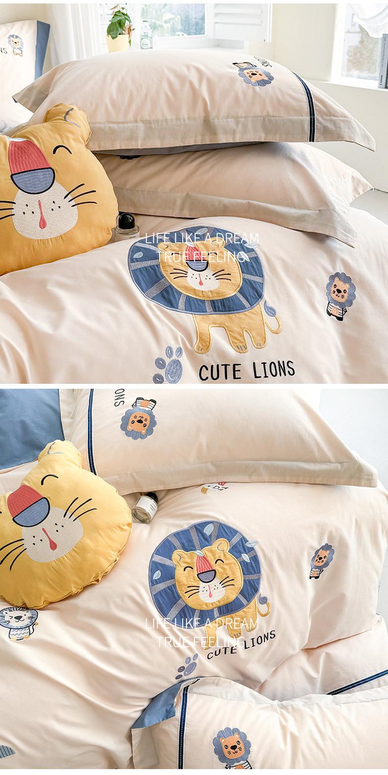 Estilo Caricatura Algodón Algodón Lavado Juego de Sábanas de Cama de Cuatro Piezas Bordado de Leoncito Cubierta de Edredón de Algodón Puro para Niños Ropa de Cama 1.2