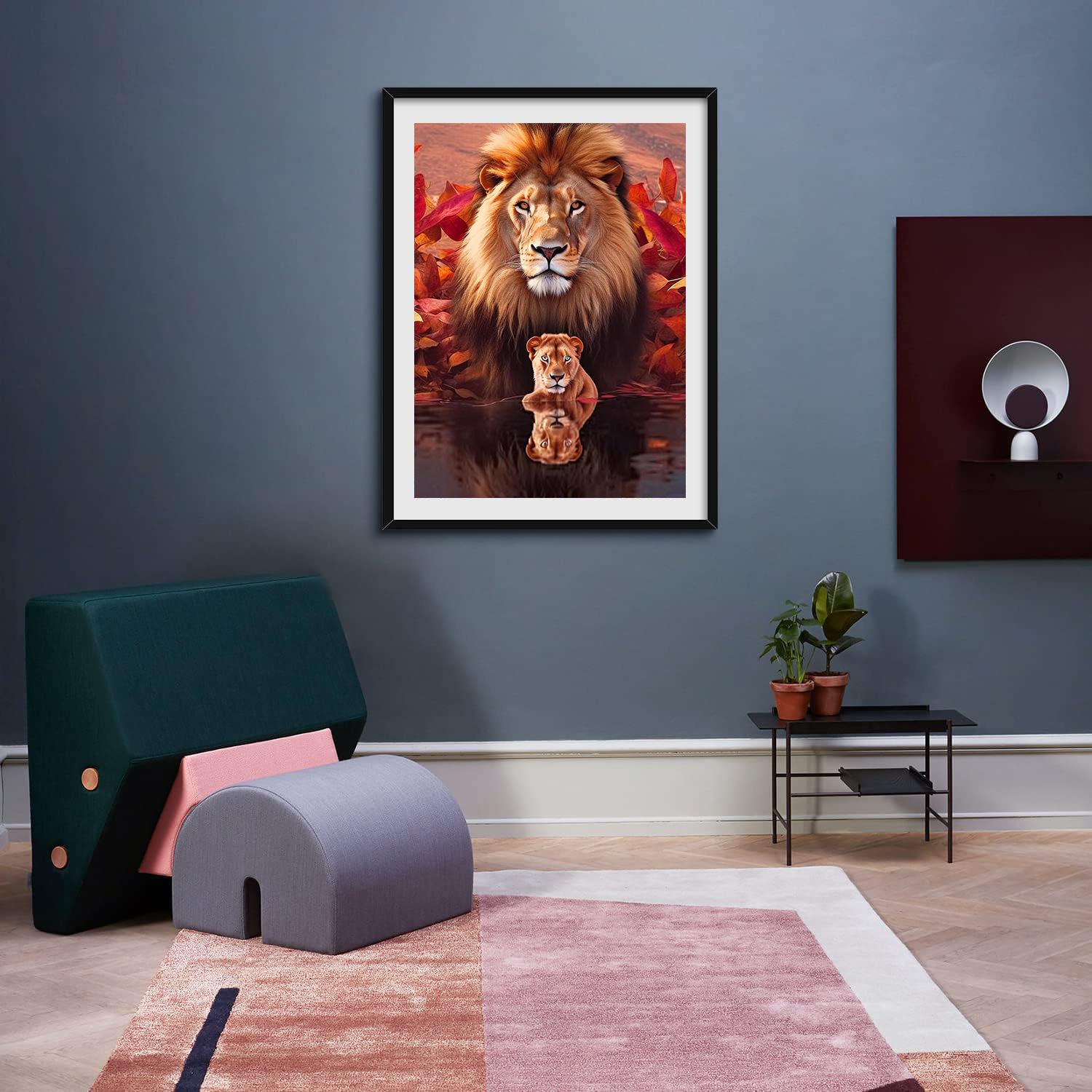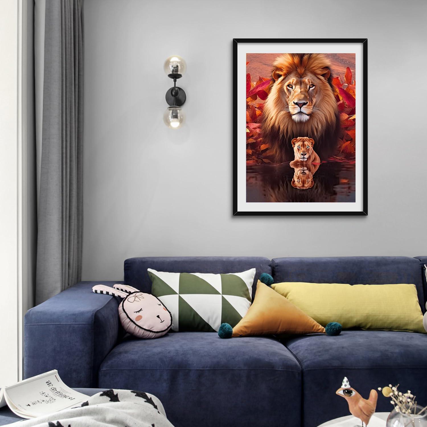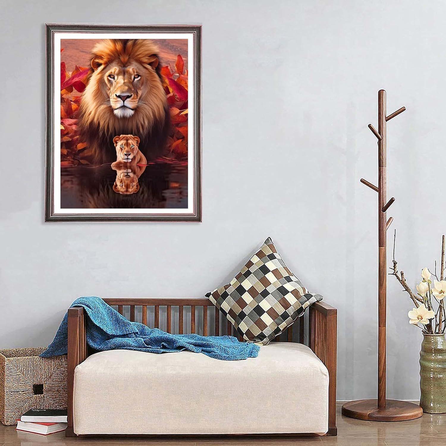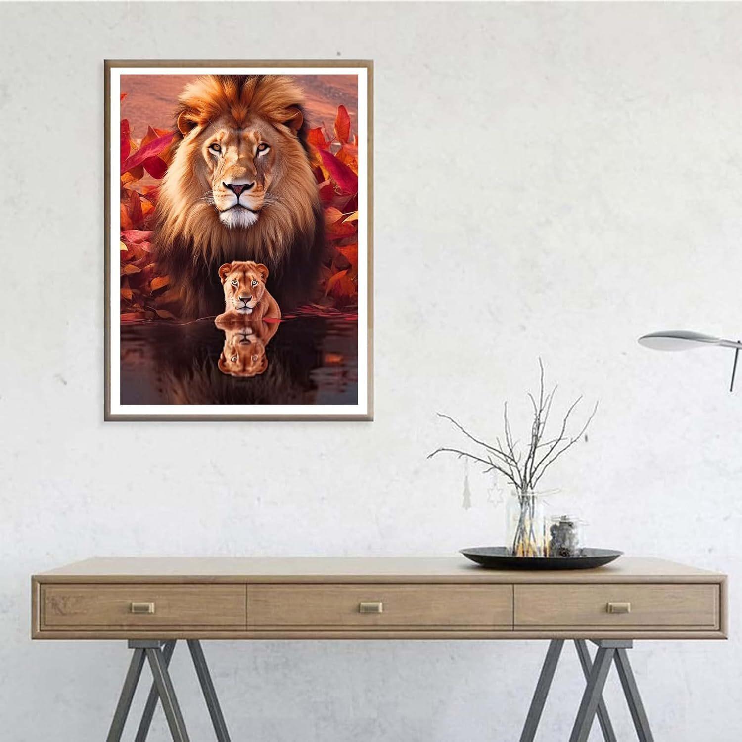 Pintura de diamante 5D con reflejo de león, bordado de diamantes artesanal, pintura decorativa, comercio exterior, gran oferta de Amazon