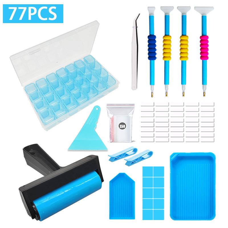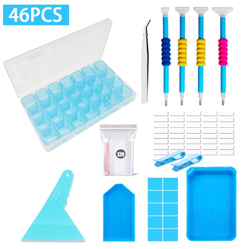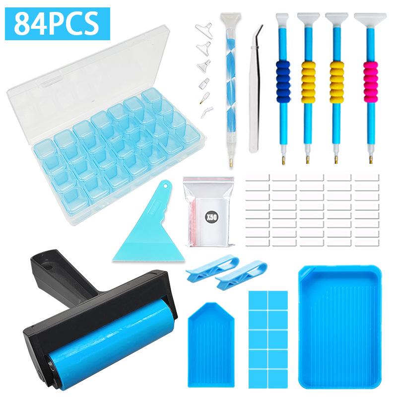 Kit de herramientas para pintar con diamantes, 84 unidades, bolígrafo de punta rápida, caja de almacenamiento de 28 rejillas, placa de perforación con punta de embudo, juego combinado