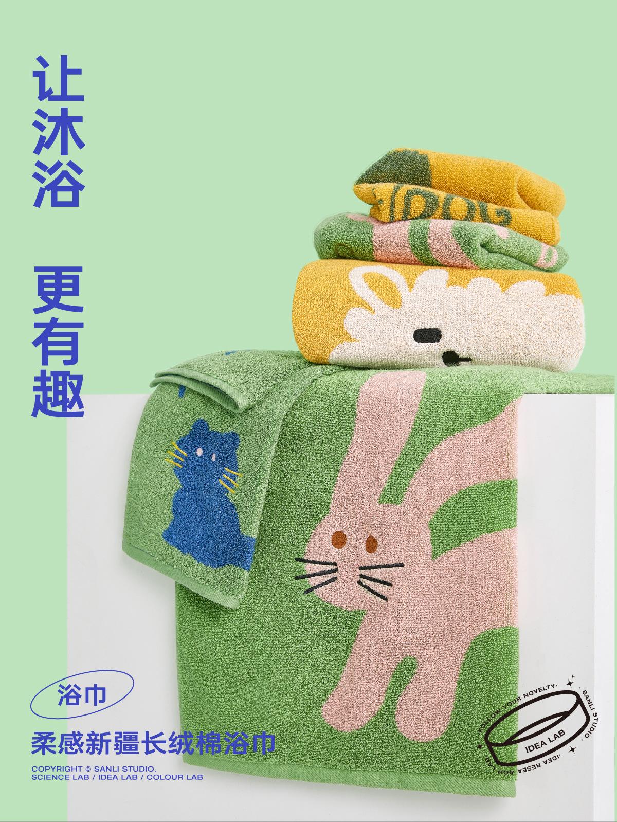 [Nueva toalla de baño] Toalla Sanli, toalla de baño jacquard teñida en hilo, toalla de baño de algodón con dibujos animados, toalla de baño para parejas.