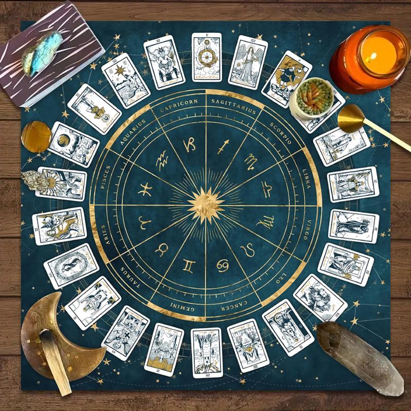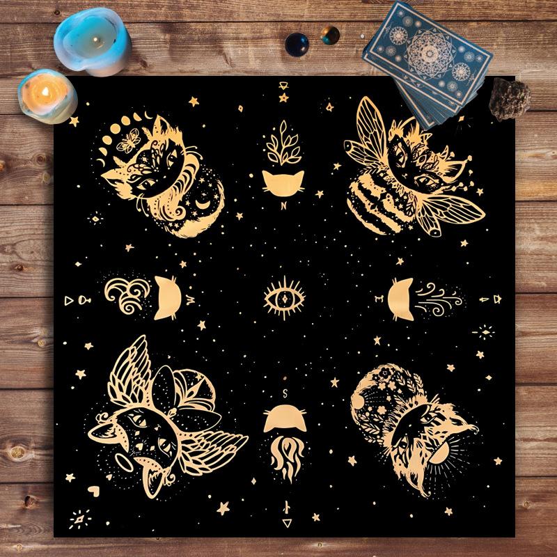 Mantel de Tarot Mantel Decorativo para Juego de Mesa Ten Tu Poder Mandala Fase Lunar Flor Mariposa Mantel Paño de Altar